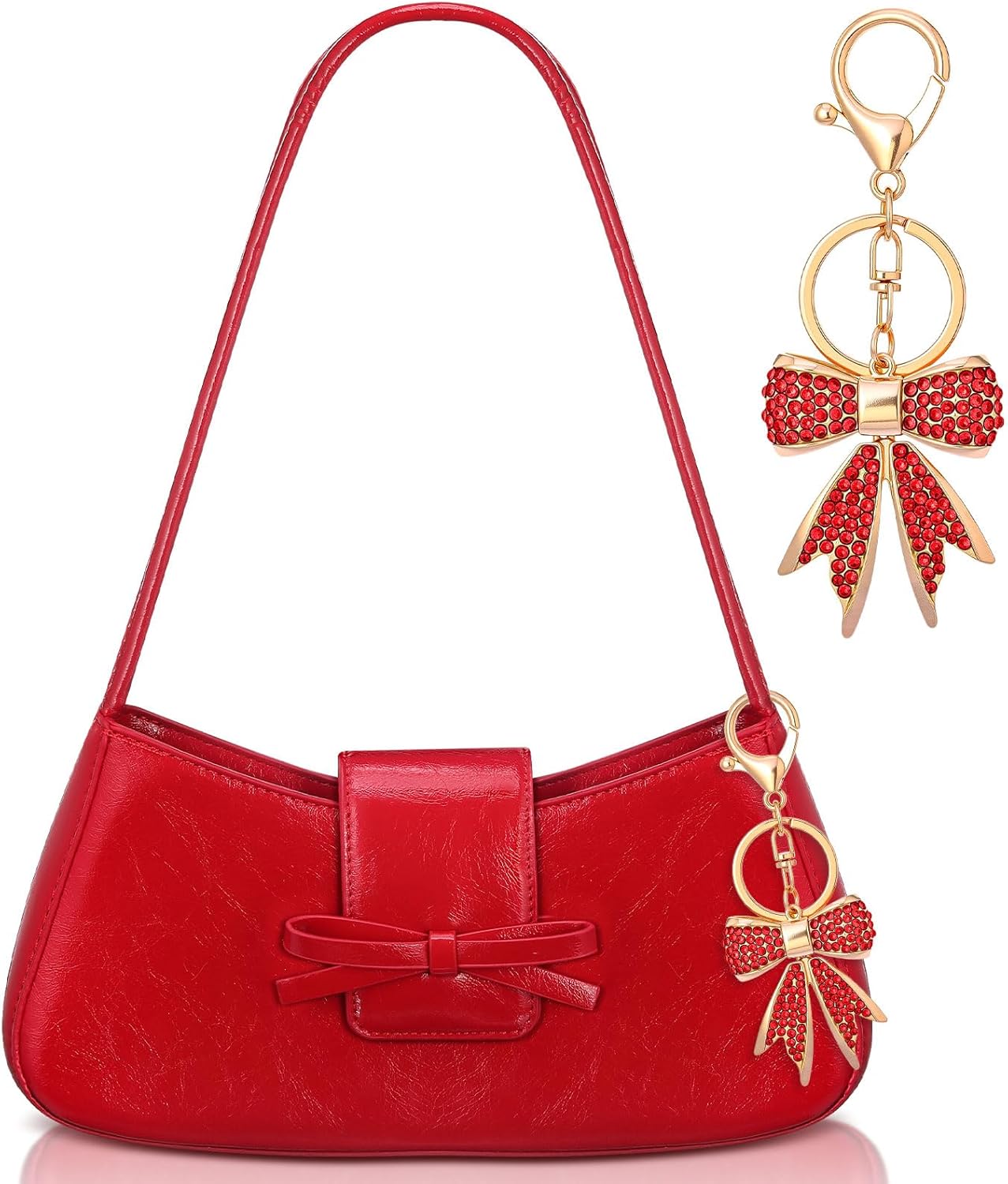 Abbylike Bow Shoulder Bag for Women with Rhinestone Bow Charm Handbag Y2k Purse Leather Clutch Cute for Valentine's Day Gift