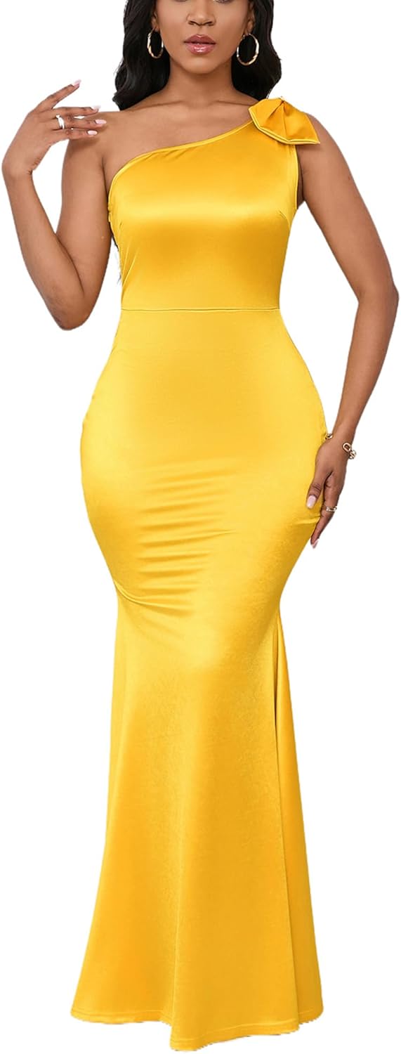 FairyLove Women's One Shoulder Sleeveless Formal Ruched Bodycon Fashion Dress Belted Cocktail Dresses
