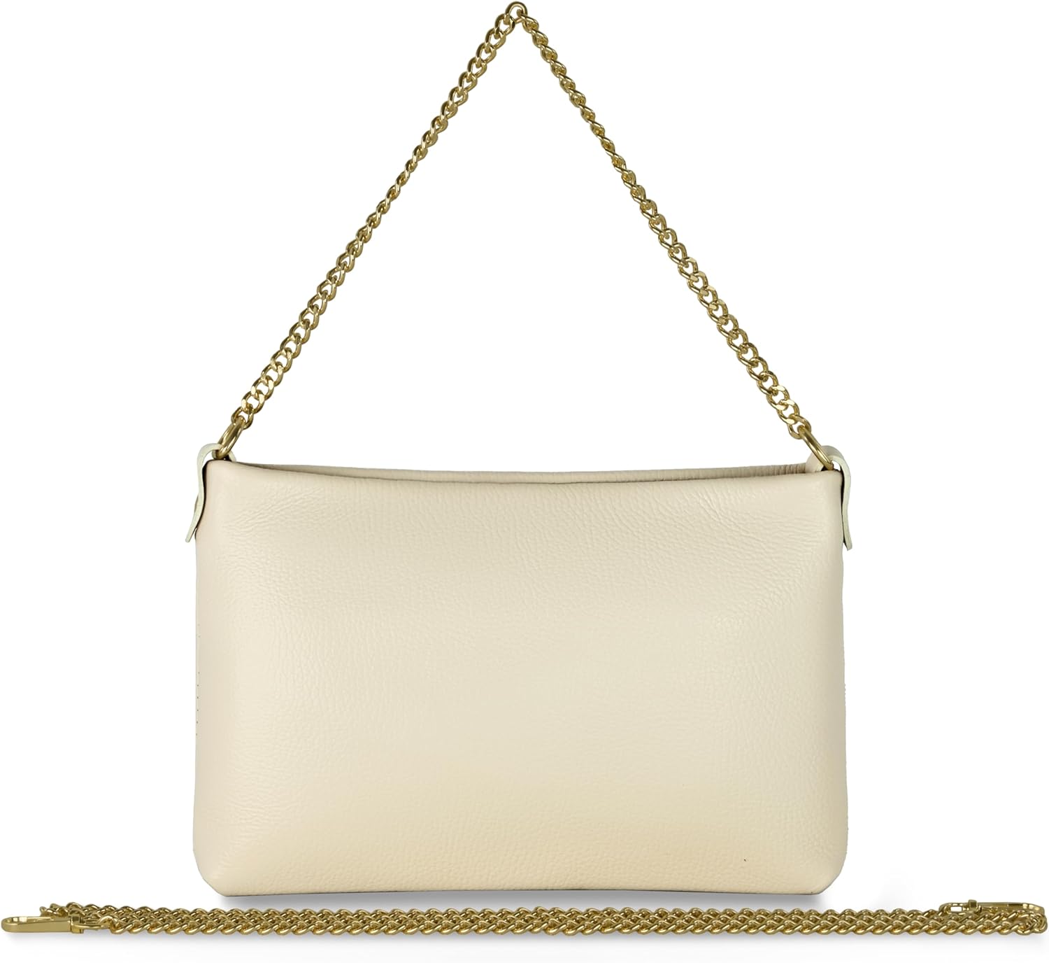 Italian Calf Leather Crossbody Bag for Women with Zipper & Chains | Small Rectangular Shoulder Purse Evening Clutch