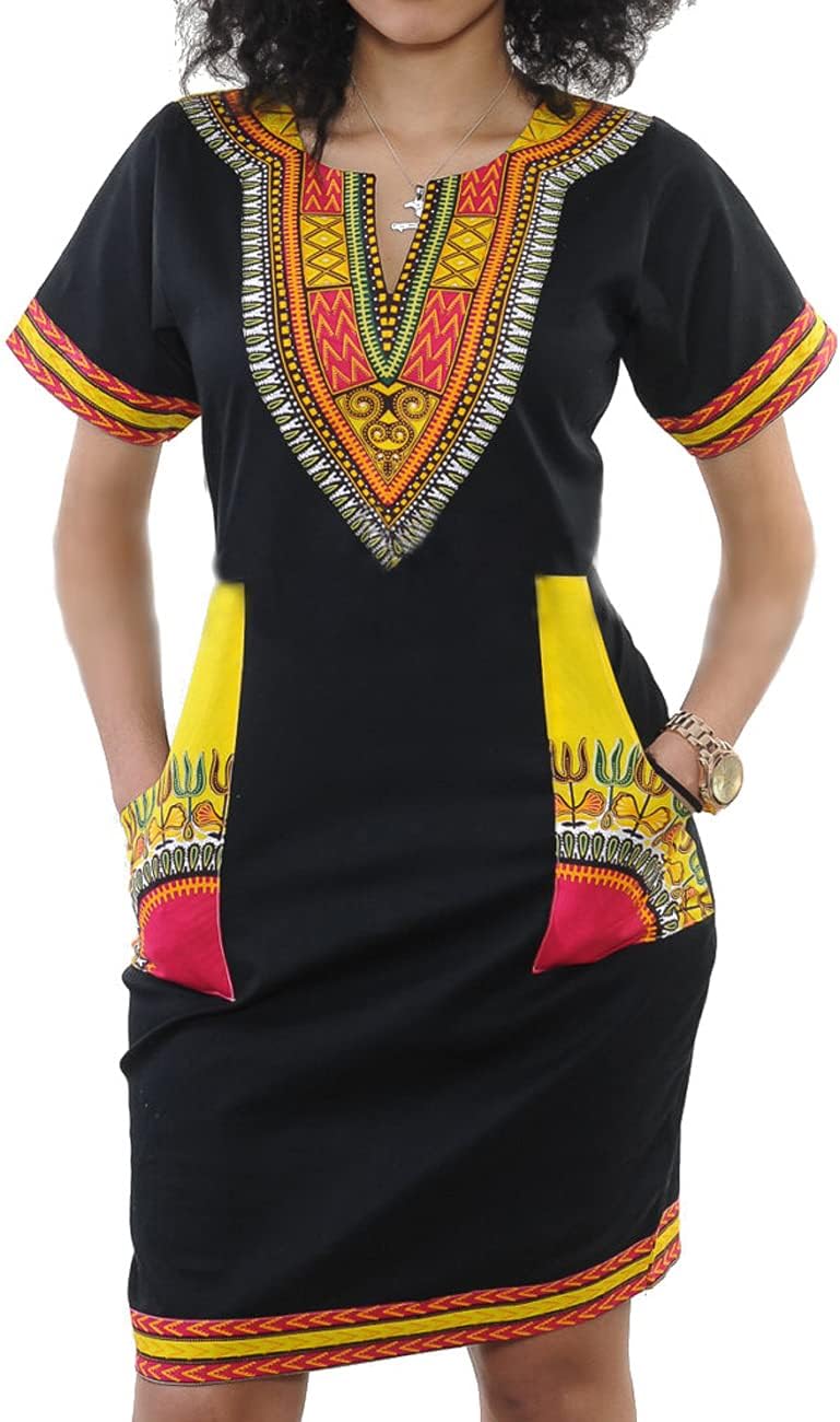 Women's Bodycon Dashiki African Midi Dresses Bohemian Vintage Club Dress with Pocket