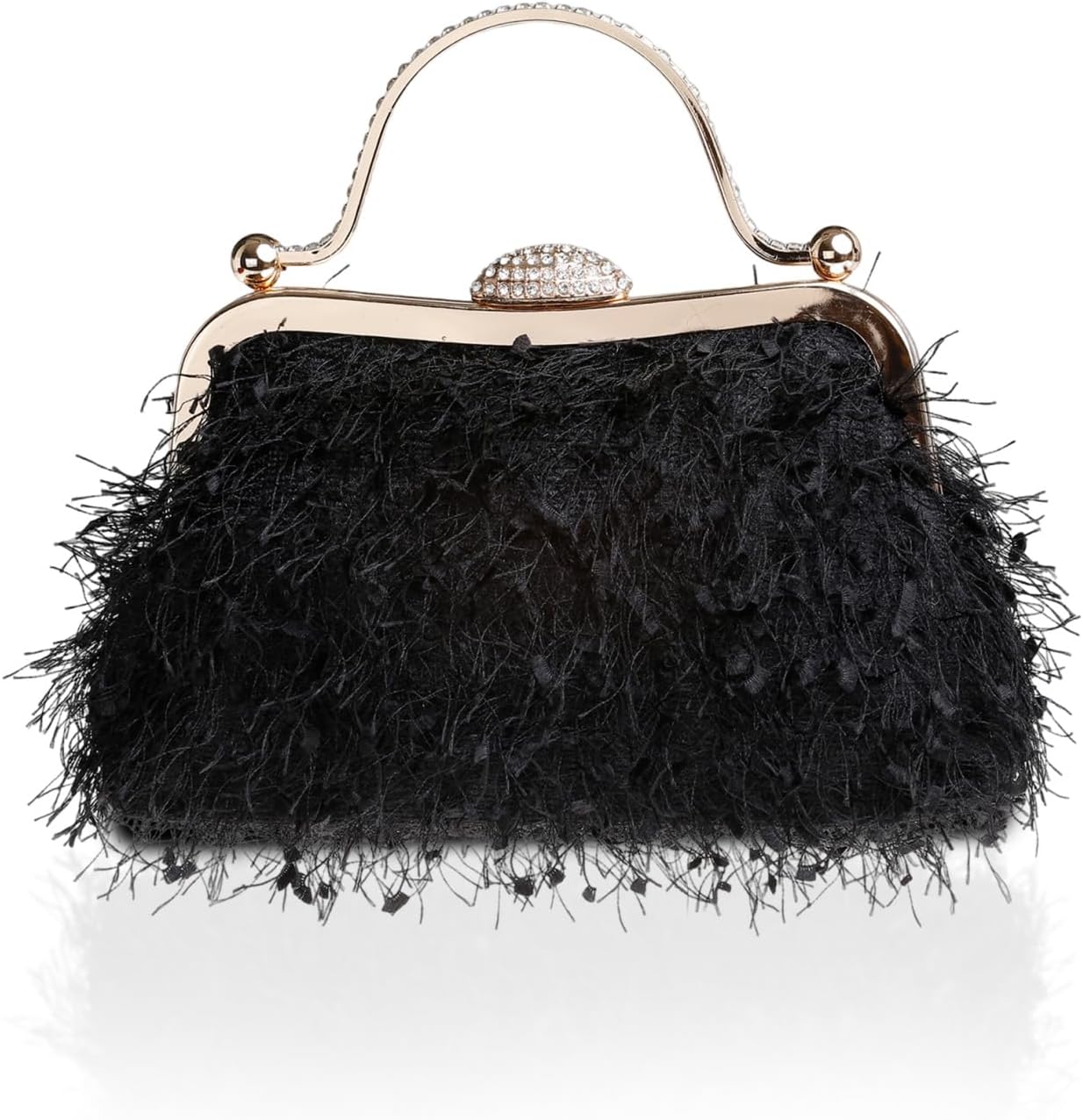 Tassel Women's Evening Handbag Cocktail Prom Formal Clutch Purse Feather Elegant Shoulder Bag for Wedding Banquet