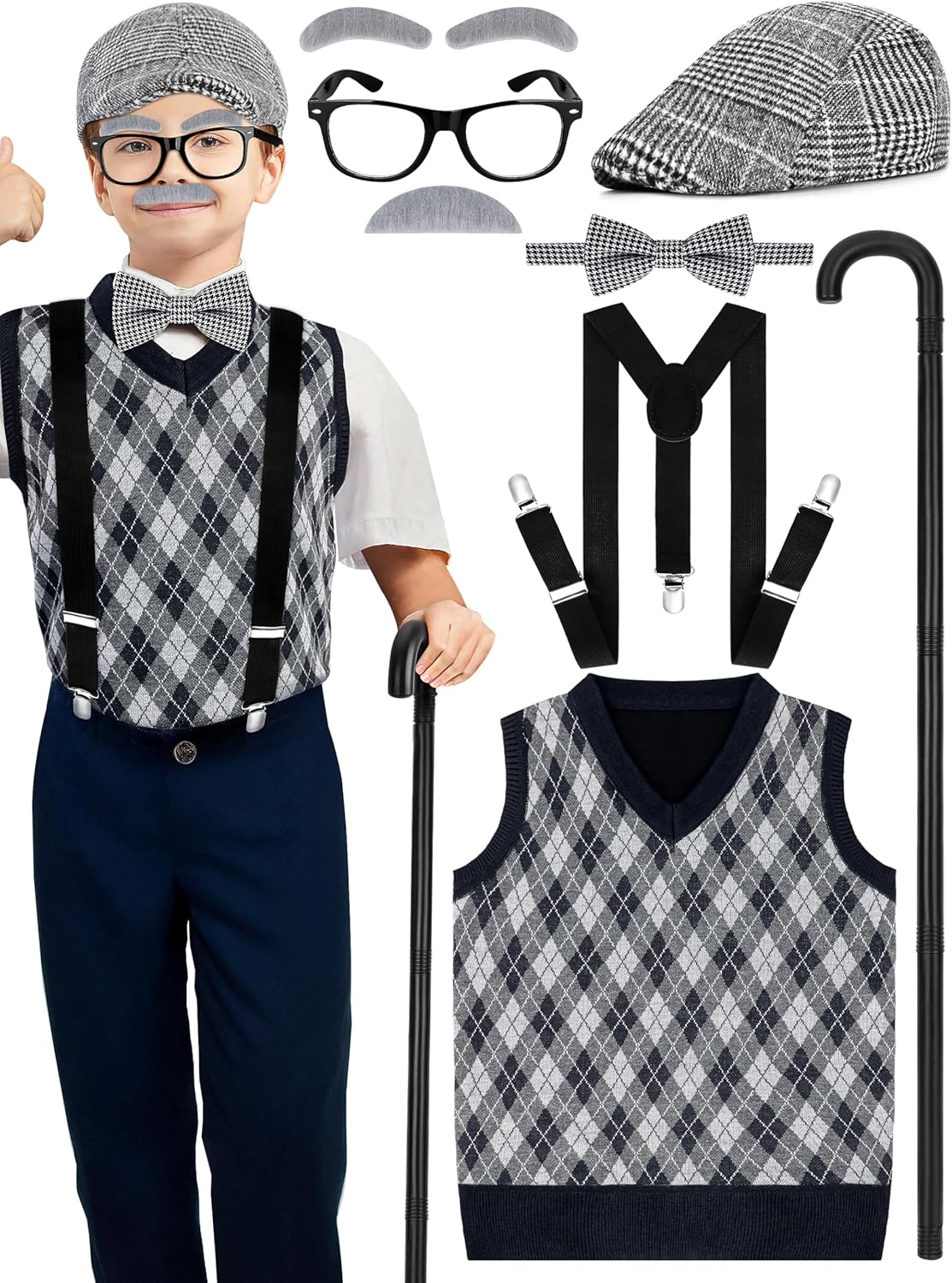 Luces 100th Days of School Costume, Boys Old Man Costume Vest Hat Accessories, Kids 100th Day of School Cosplay Outfit