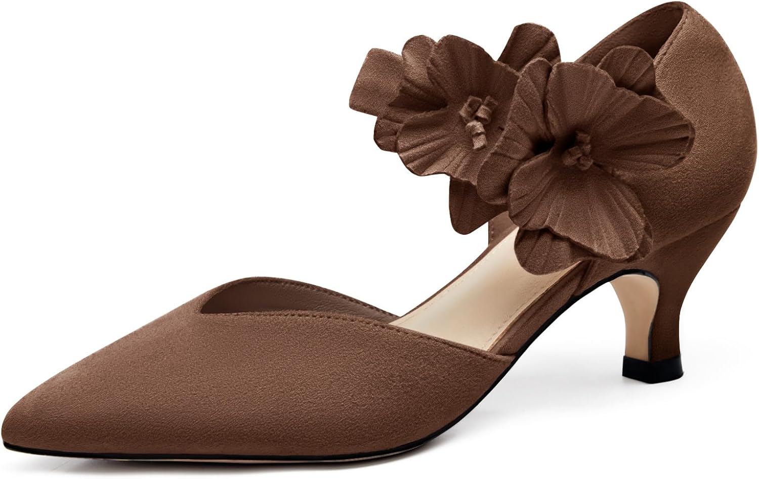 Coutgo Womens Low Kitten Heels Dressy Shoes Comfortable Closed Toe Flower Slip on Formal Party Dance Heeled Pumps