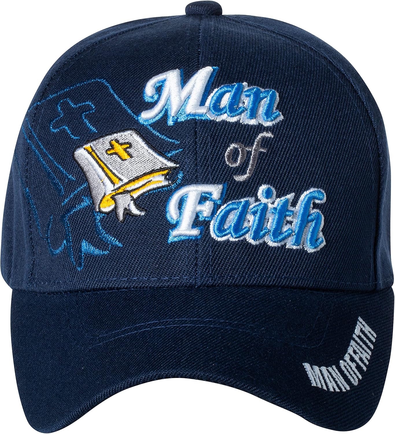 Artisan Owl Man of Faith Embroidered Bible Cap - Adjustable Hook and Loop Closure Religious Christian Gift (Navy Blue)
