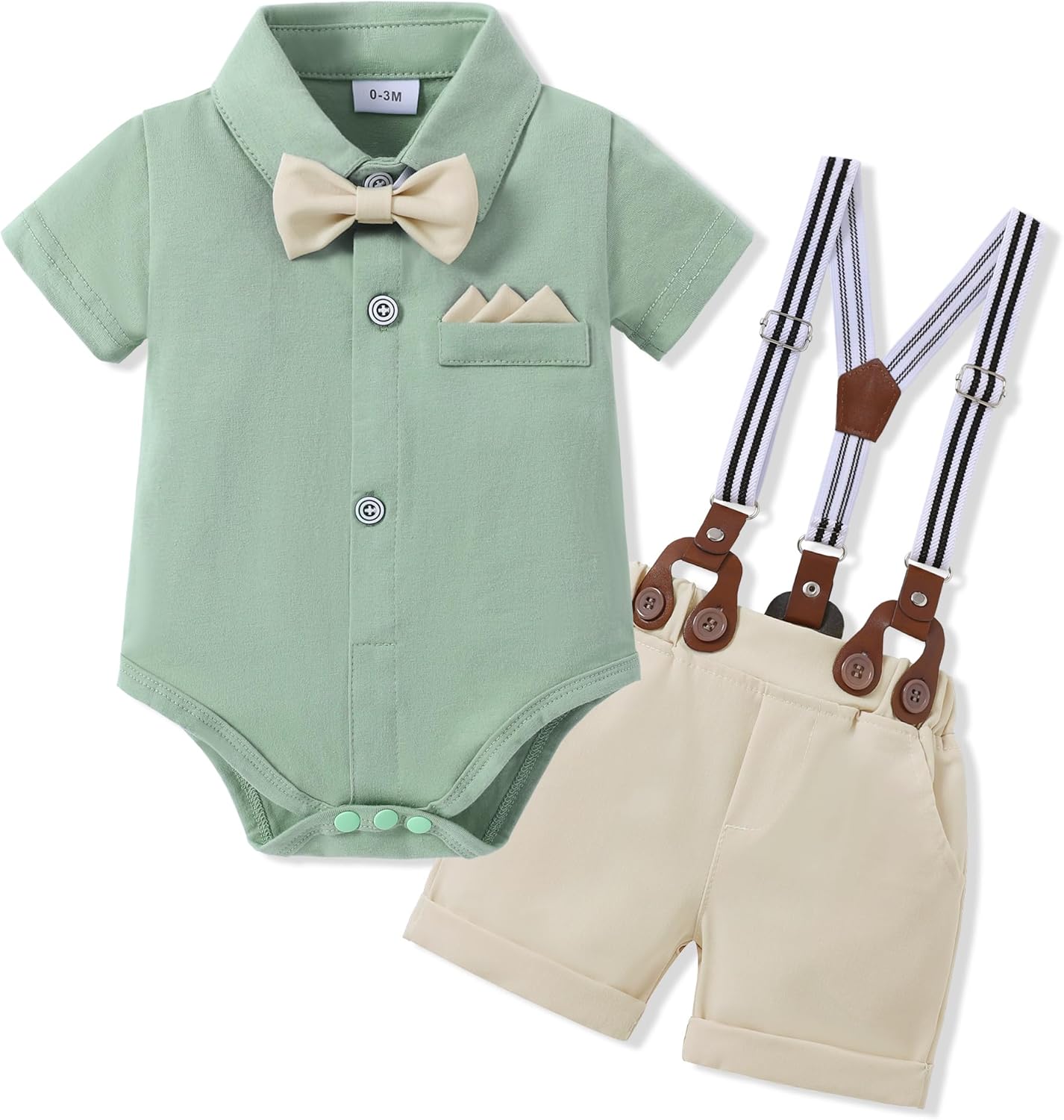 SANMIO Baby Boy Clothes Suits Short Sleeve Top+Bowtie+Suspender Shorts Summer Infant Gentleman Birthday Outfits