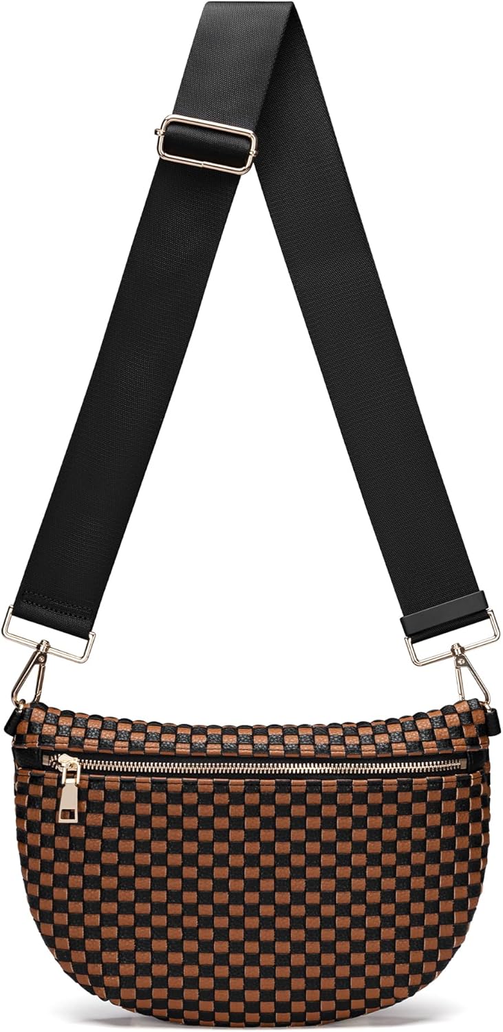 Woven Crossbody Bag Stylish Checkered Shoulder Bag for Women Vegan Leather Fanny Packs Bum Bag Sling Purses