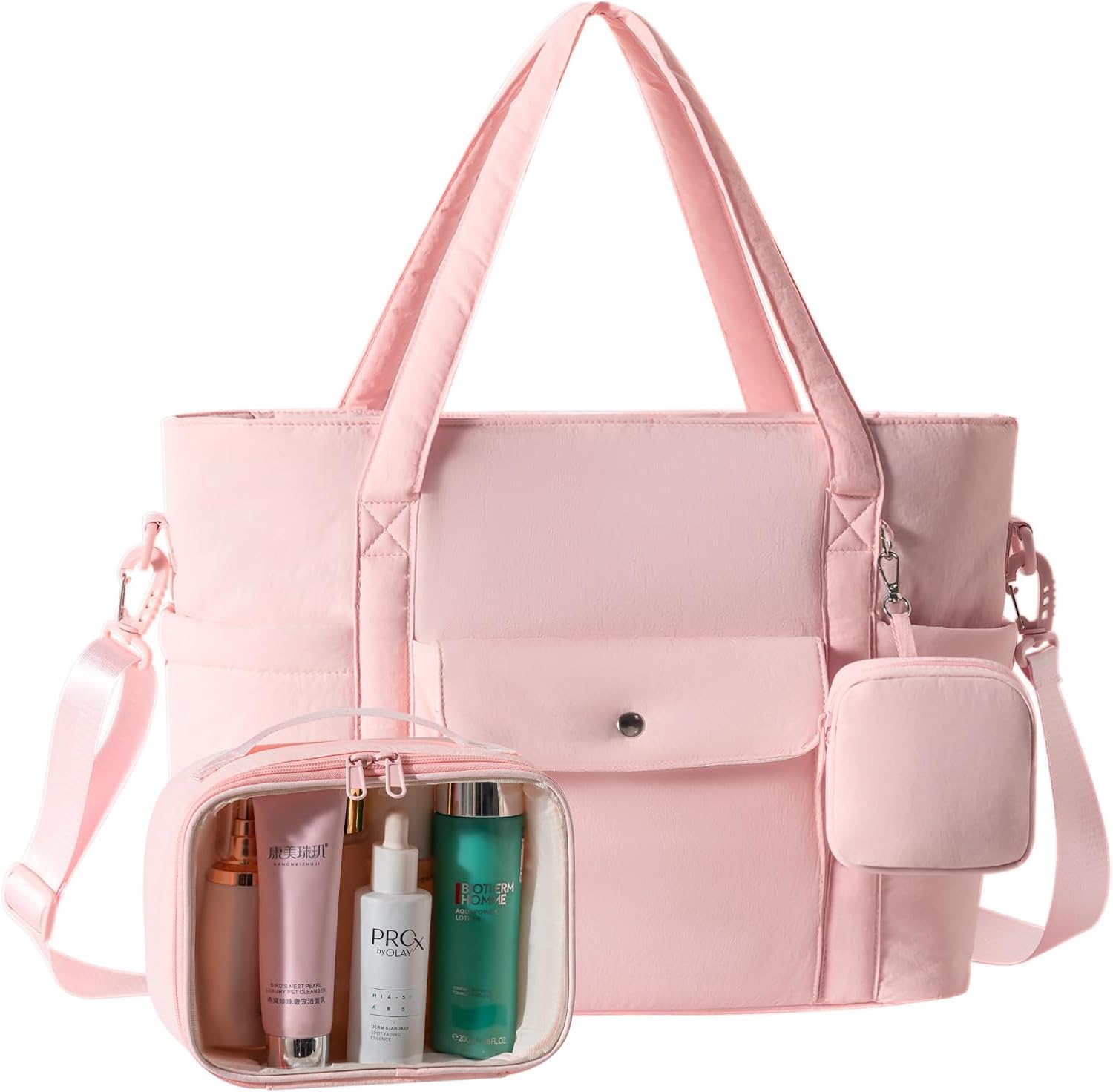 Hospital Bag for Women Labor Delivery with Insulated Pocket, Large Weekender Bag with Waterproof Toiletry Bag, Overnight Bag Travel Duffle Bags for Women with Shoulder Strap (Pink)