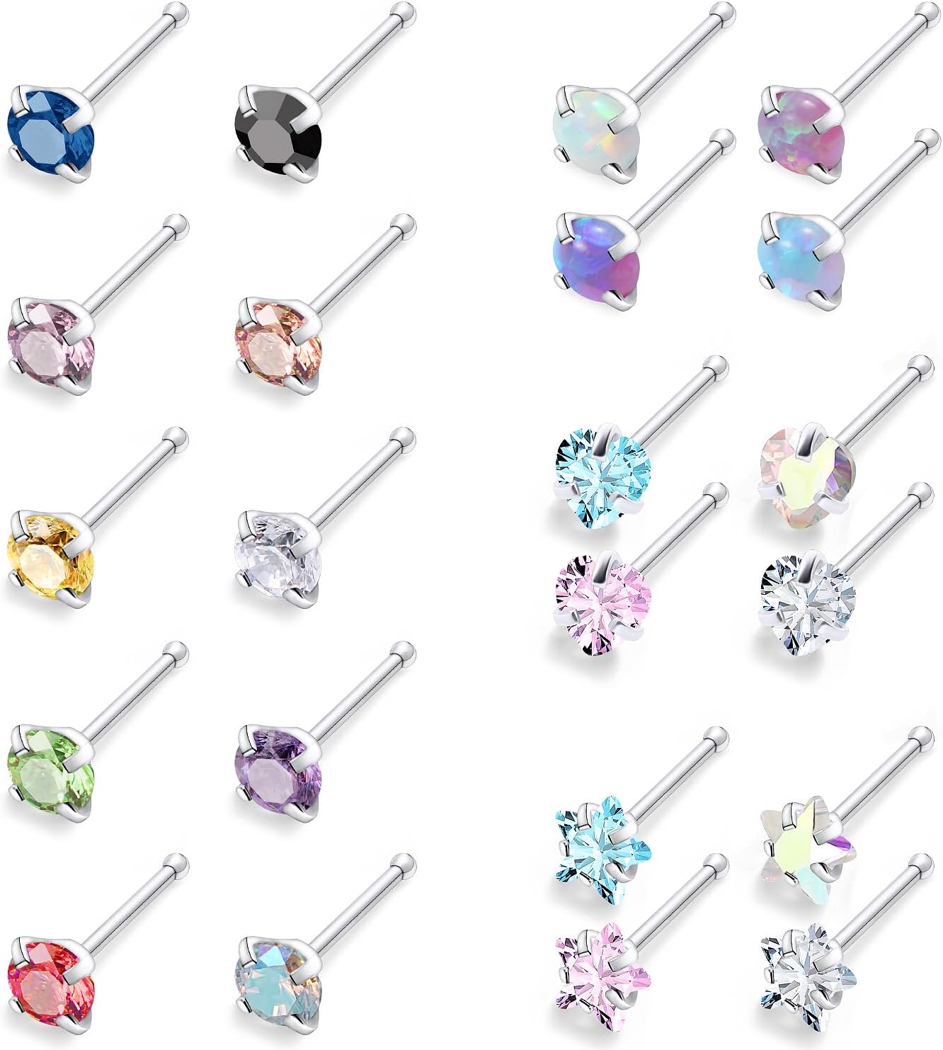20/18g Nose Rings Studs Straight/L/Corkscrew Shape Bars Piercings Jewelry for Women Hypoallergenic Surgical Steel