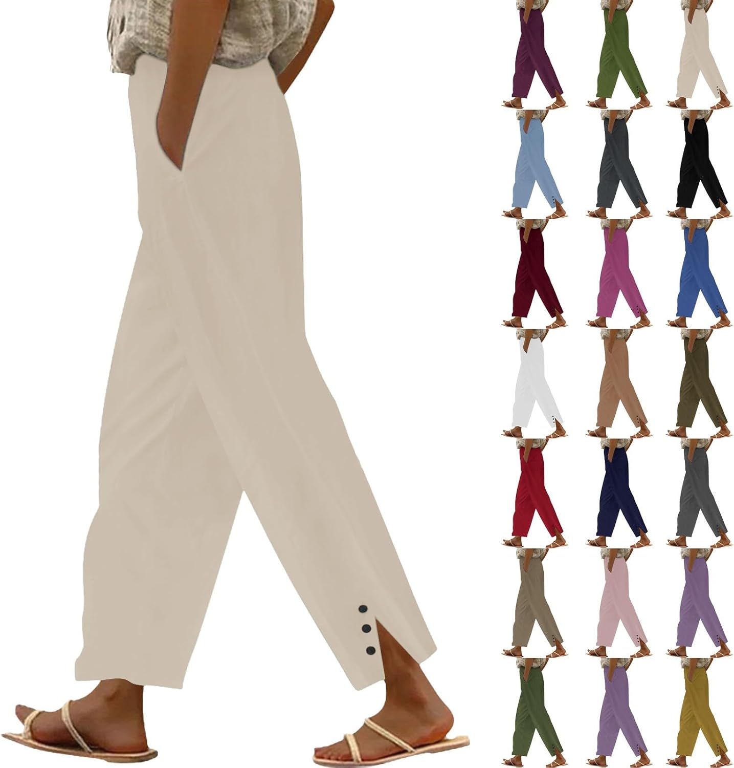Cropped Linen Pants Women 2026 Summer Loose Fit Casual Gauze Pant Elastic Waist Capri Beach Trouser with Pockets