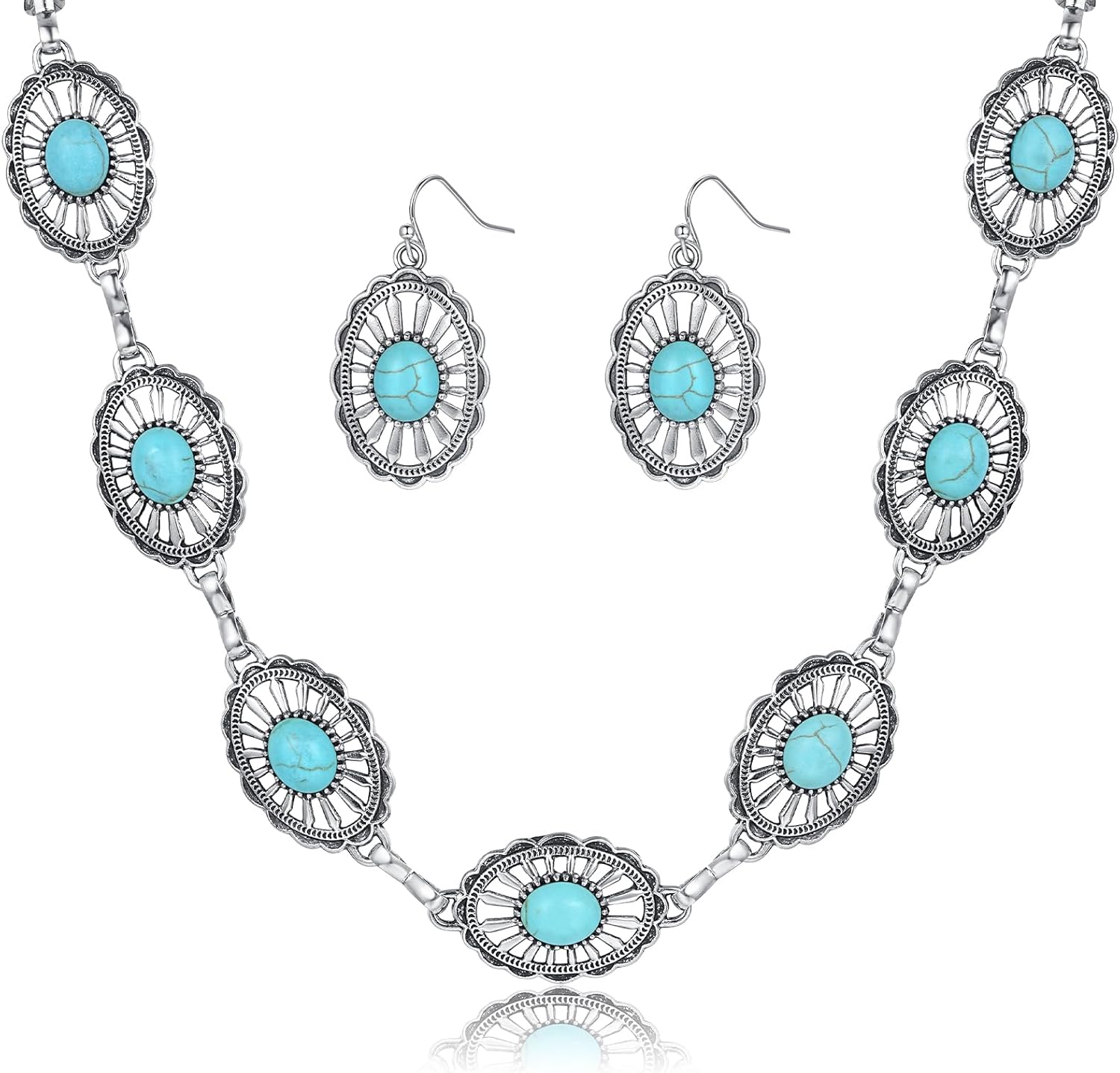 Turquoise Jewelry Set for Women Bohemian Western Jewelry Set Adjustable Western Necklace Dangle Earring Bracelet Boho Cowgirl Cowboy Chic Accessories for Women