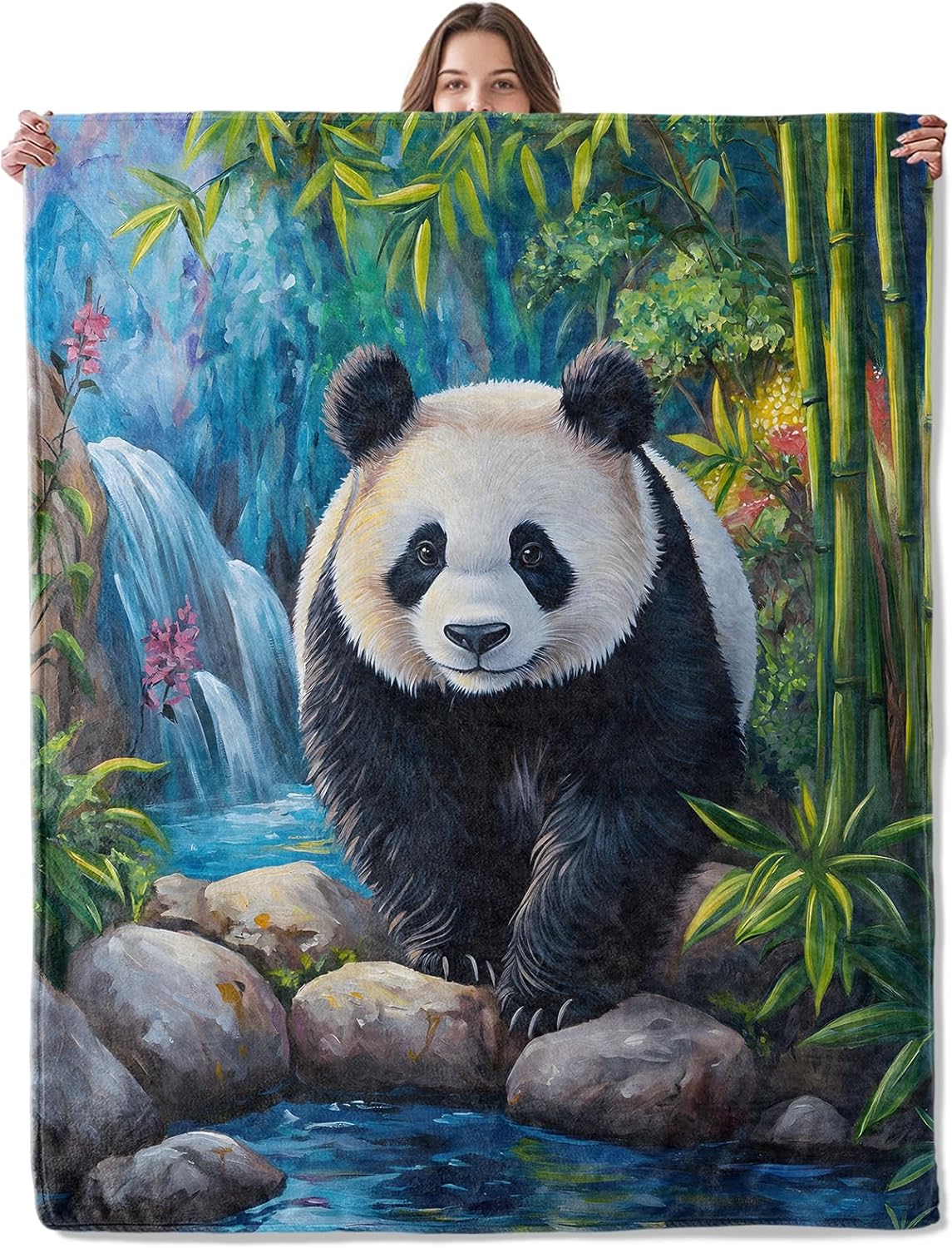 Panda Blanket, Lightweight Comfy Waterfall and Forest Botanical Animal Throw for Couch Sofa Bedroom, Soft Cozy Travel Flannel Nature Cute Blankets Gifts for Girls Boys Kids, Home Decor 60×50in