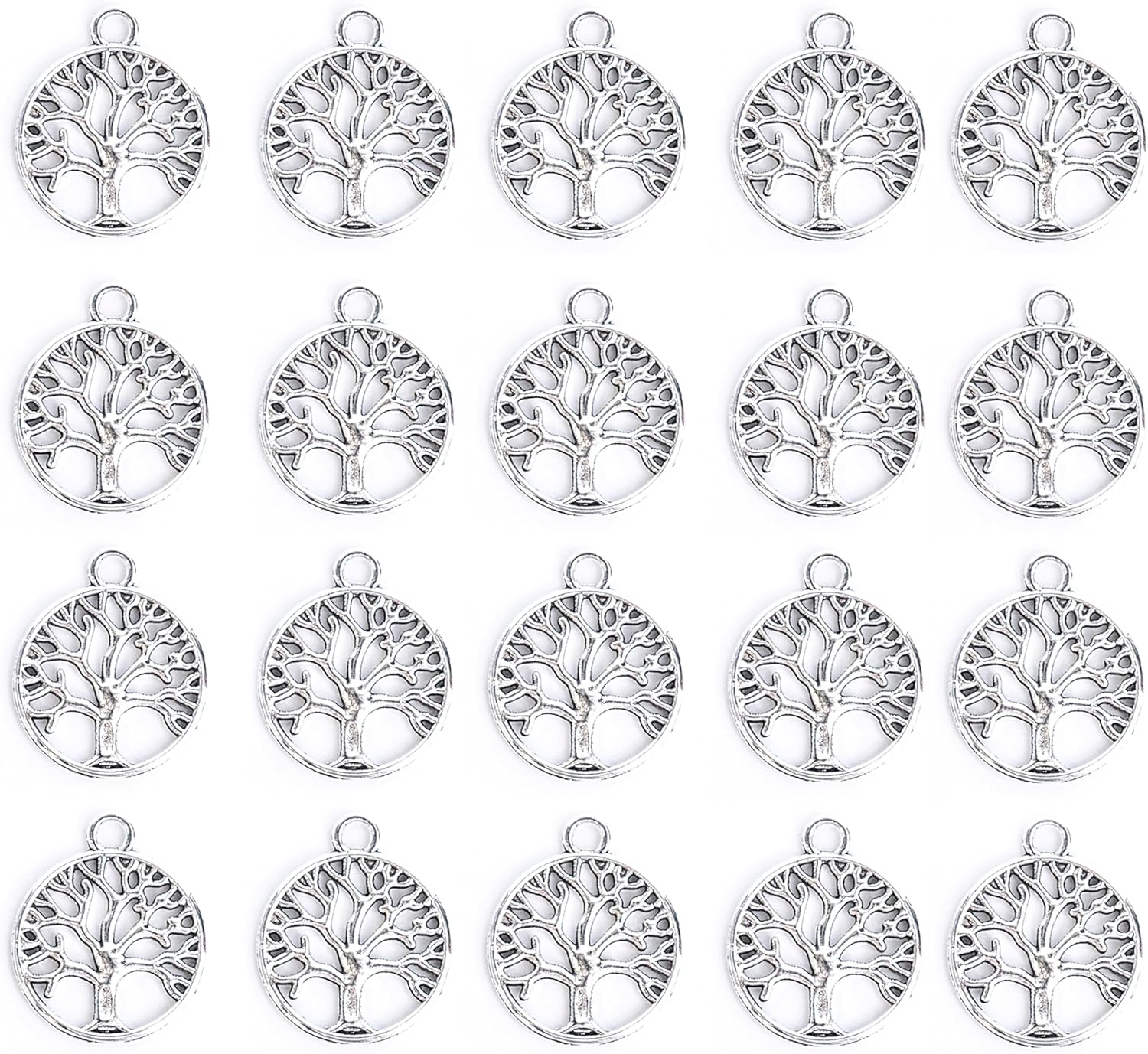 50 Pack Alloy Golden Plated Tree of Life Charms, 24 * 20mm Antique Finish Pendants for Jewelry Making, Necklace & Bracelet Craft Findings