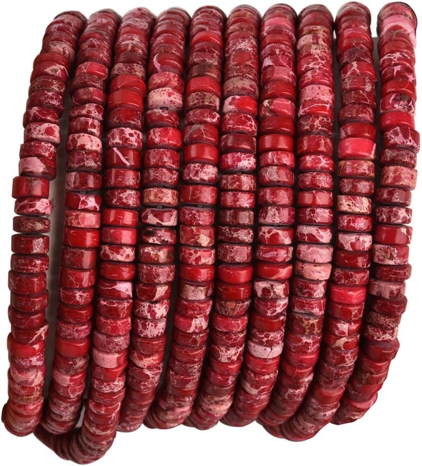 190pcs 4mm*2mm Natural Red Sea Sediment Imperial Jasper Heishi Disc Gemstone Loose Semi Precious Stone Spacer Beads Jewelry Making Design Crafts 15 Inch