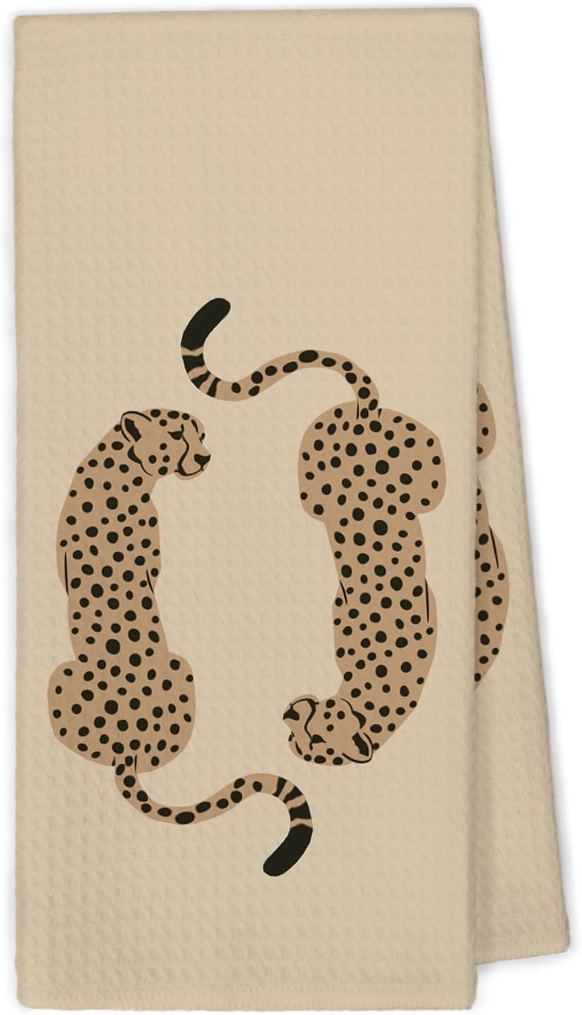 Funky Leopard Cheetah Kitchen Towels, Trendy Preppy Cheetah Gifts for Women Teen Girl Dish Hand Tea Towels, Maximalist Leopard Decorative Towel for Dorm Bathroom Restroom Decor, 16x24inch