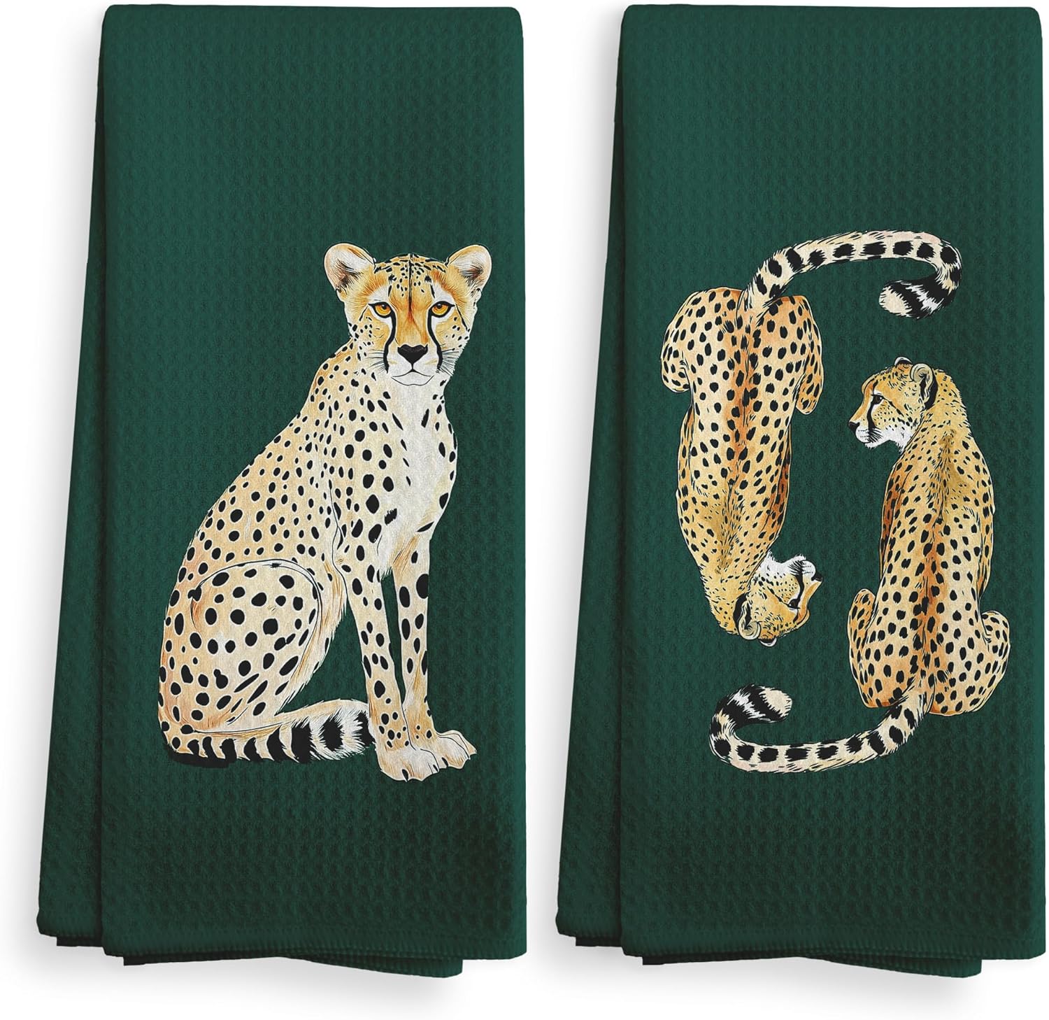 Preppy Leopard Decor Kitchen Towels and Dishcloths Set of 2, Leopard Cheetah Gifts, Emerald Green Bathroom Decor, Trendy Vintage Cheetah Drying Cloth Hand Dish Towels for Bathroom, 16x24 Inch