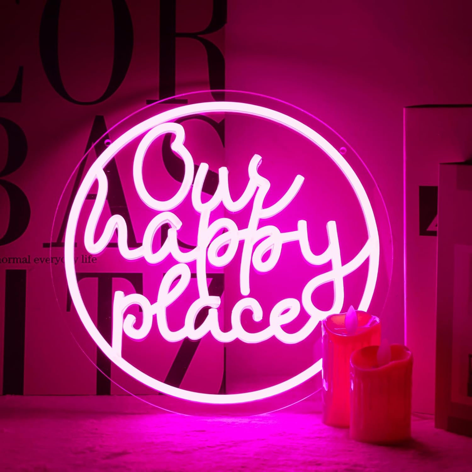 - Surprisingly home style:Whether you're looking to create a cozy and whimsical atmosphere in your living room, or game room, this neon Our Happy Place sign is sure to delight both children and adults alike.whether it is placed in the bedroom, children's room, living room, party, or decorating game rooms, bedrooms, dormitories, it is a good choice.