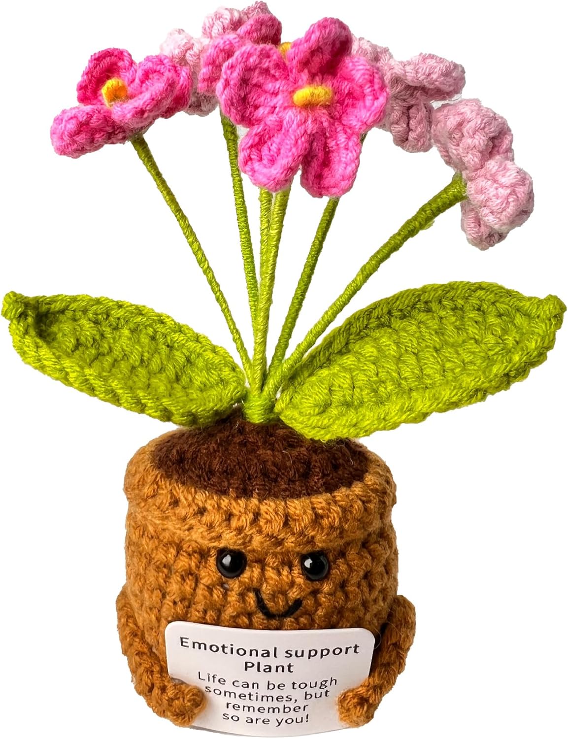 Emotional Support Crochet Flower in Pot,Uplifting Handmade Knitted Plush Plant with Positive Affirmation Card,Cheerful Gift for Office Desk Decor,Home,Car(Pink Forget-Me-Not)