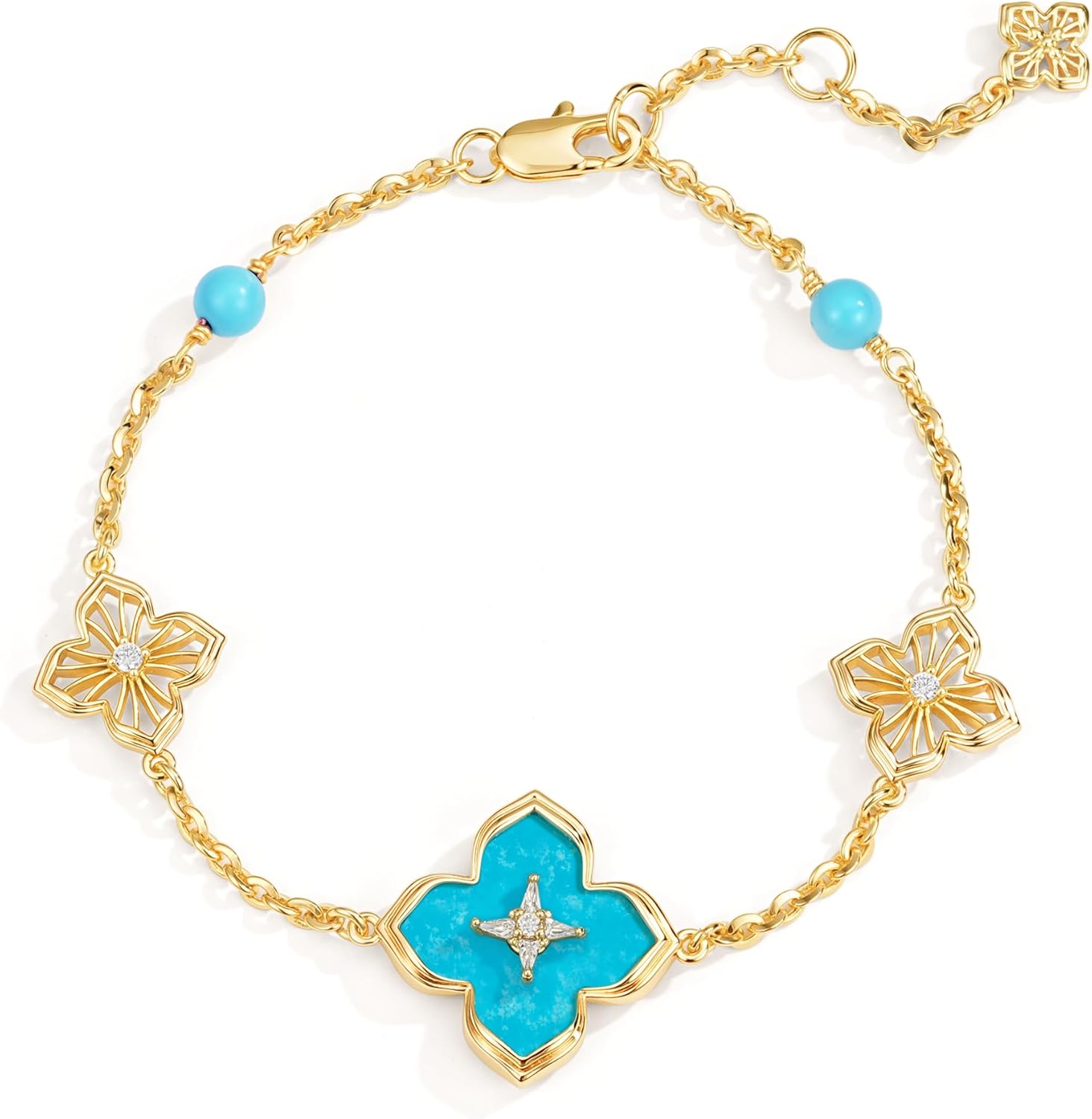 FETERO Gold Bracelets for Women Trendy, Dainty 14K Gold Plated Charm Clover Bracelet 2 Sided Lucky Pendant Cute Pearl Beaded Bracelets Link Chain Waterproof Womens Jewelry Gifts