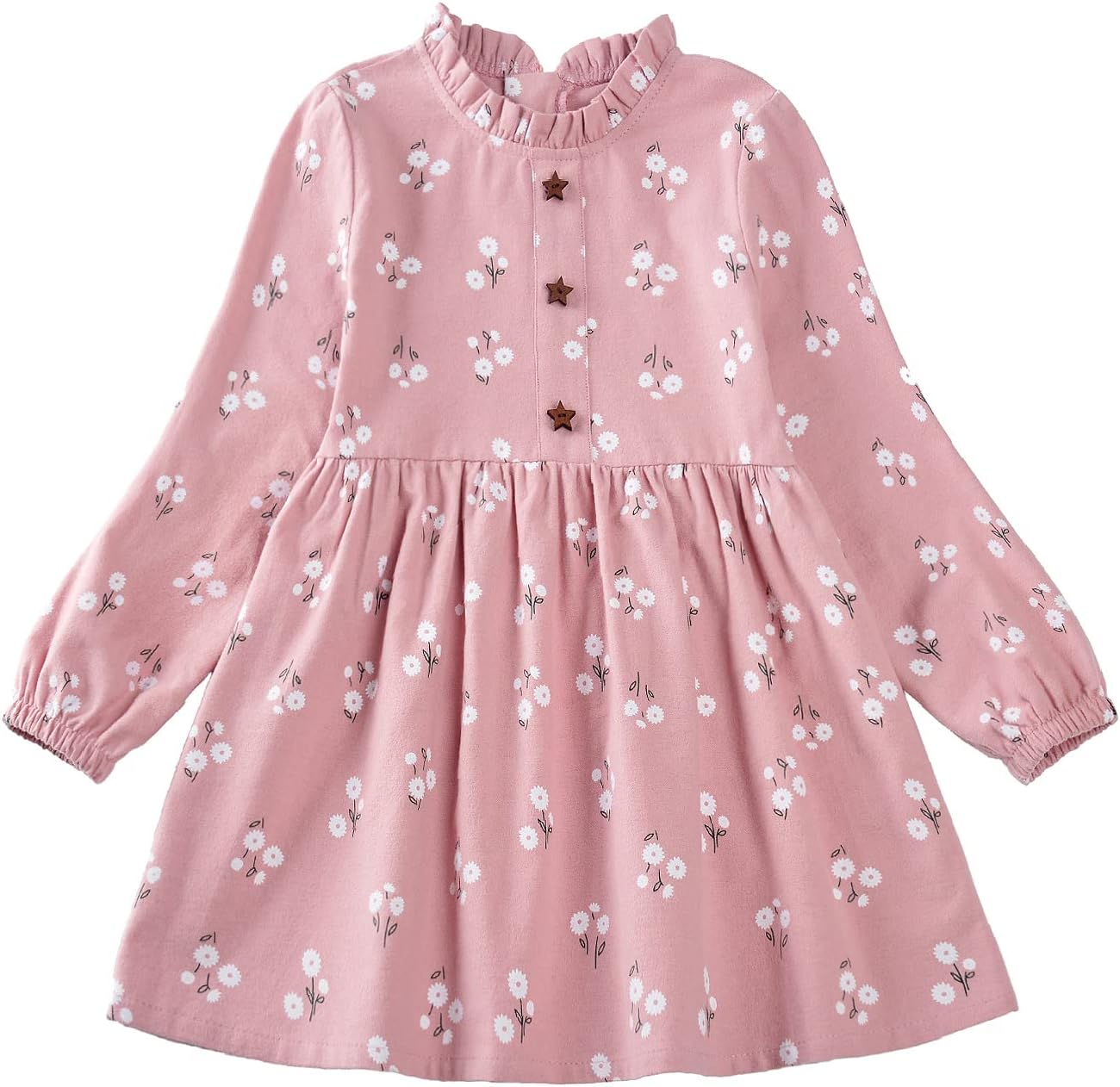 VINUOKER Toddler Girls Cotton Dress Floral Dress for Little Girls midi Dress 2-7years Fall Winter Dress