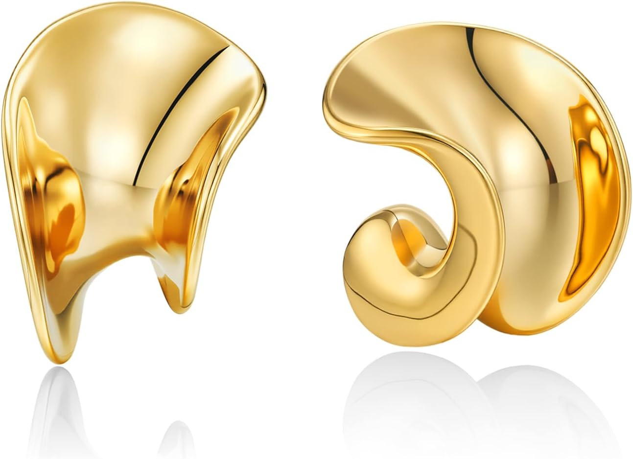 SNGIA18K Gold Plated Dangle Textured Ribbed Irregular Large Leaf Statement Earrings for Women by SNGIA, Handmade Dramatic Geometric Trendy Summer Drop Leaf Flower Jewelry Gifts, Bold Beachy Vintage Plant Fashion Drop Accessories, Vintage Nickle Free Floral Dangling Earrings.