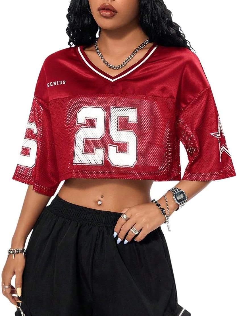 SOLY HUX Jersey Shirts for Women Y2k Crop Tops Streetwear Sportswear Short Sleeve T-Shirt Cute Football Jersey Top