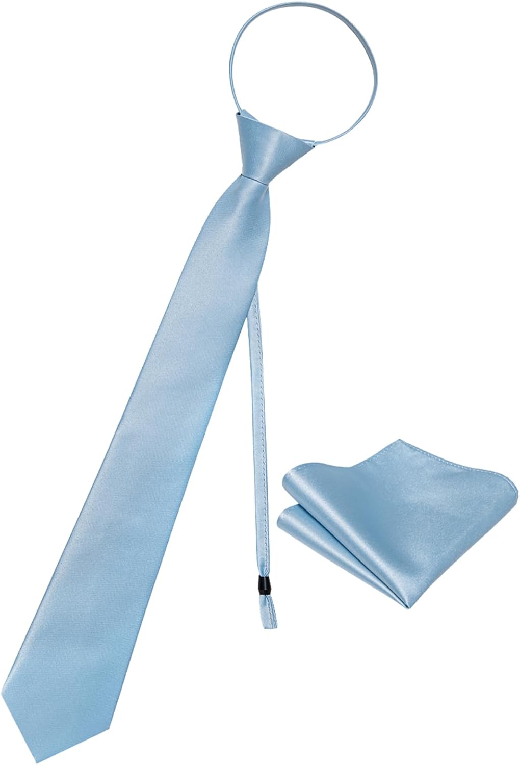 Zipper Tie for Men Adjustable Pre-tied Satin Neckties and Pocket Square Set Solid Color Business Formal Wedding
