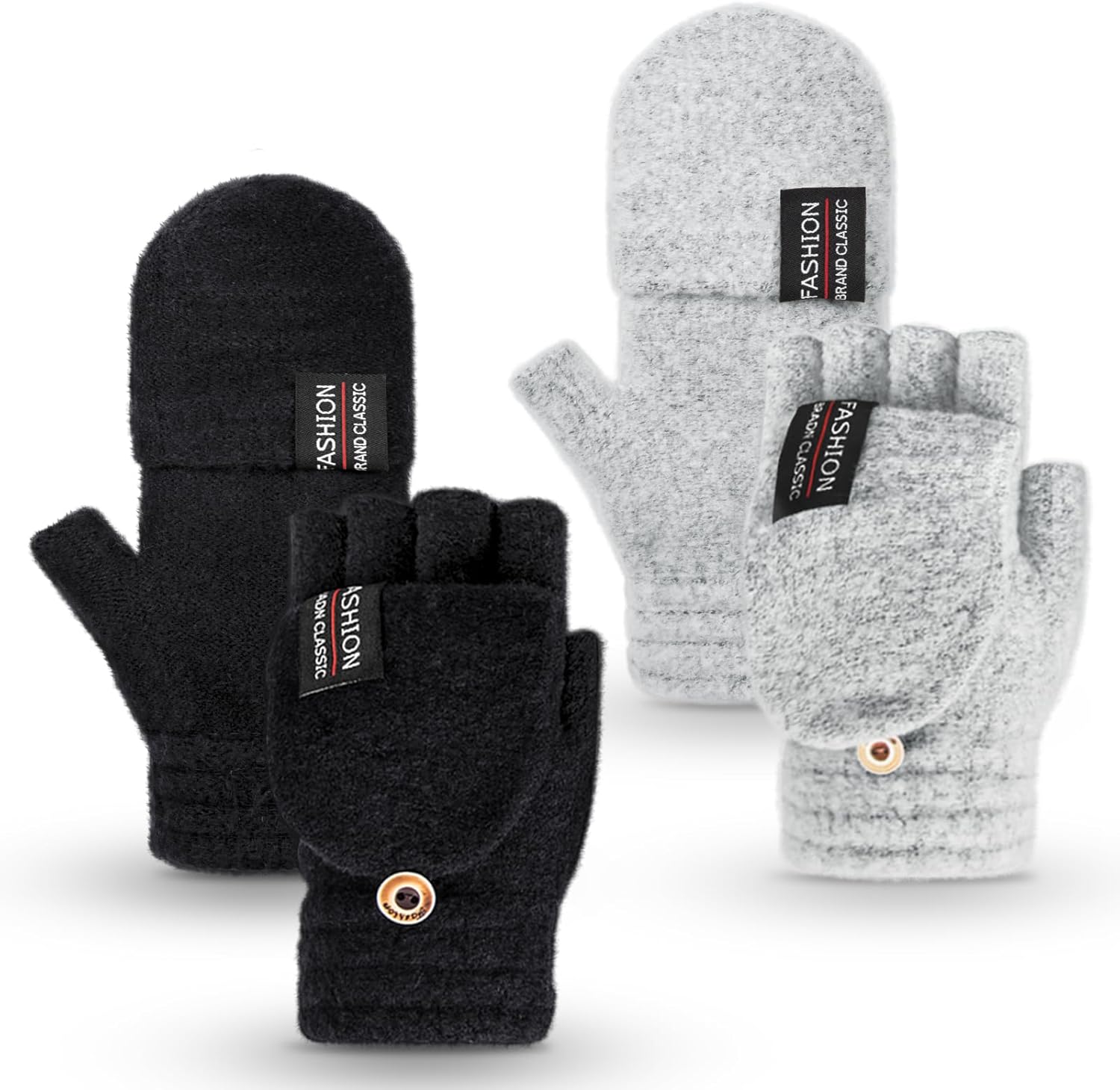 YSense Womens Winter Gloves, 2 Pack Warm Knitted Convertible Fingerless Gloves for Women Gifts with Mittens Cover Cap