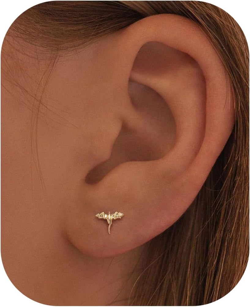BSGRL Flat Back Earrings- 14K Gold/White Gold Plated Tiny Bow Sun Moon Star Hammerhead Shark Dragon Cowboy Boot Palm Tree Softball Flatback Stud Earrings for Women Helix Jewelry
