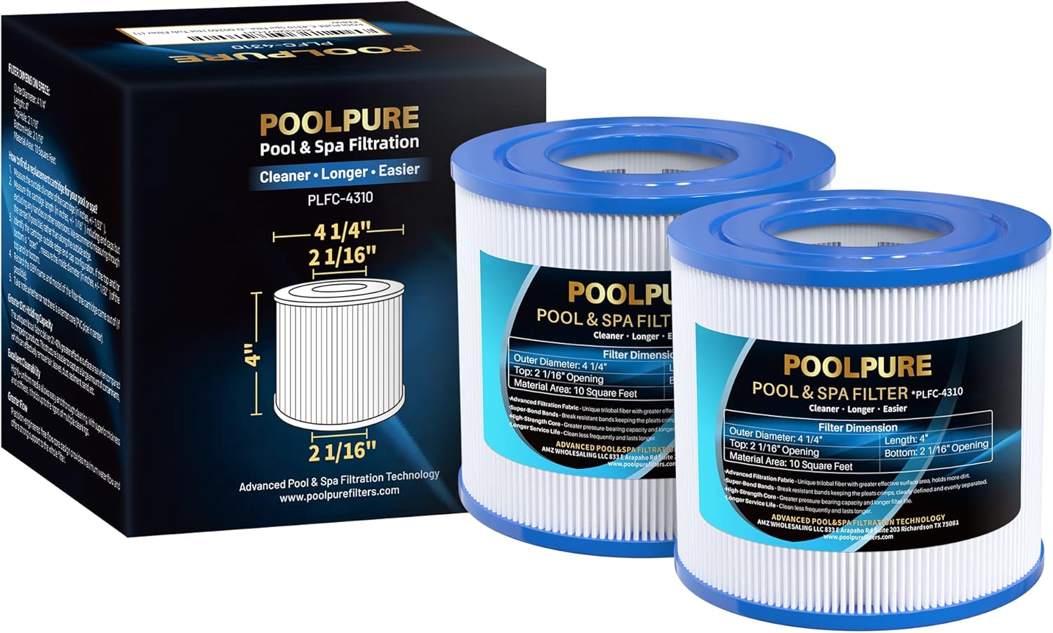 POOLPURE C-4310 Spa Filter Replaces PWW10, Filbur FC-3077, Excel Filters XLS-435, Aladdin 11003, Baleen AK-3006, Darlly 40101, Thermo Spa FL1003, SD-00260 Hot Tub Filter 2 Pack