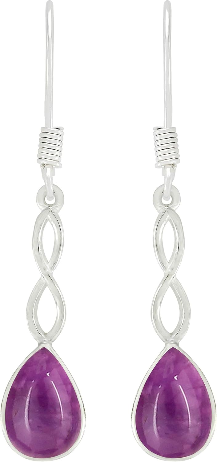 Teardrop Shape Natural Gemstone Dangle Earrings for Women - Handmade 925 Silver Plated Lightweight Birthstone Bohemian Jewelry - Perfect for Birthday & Special Occasions