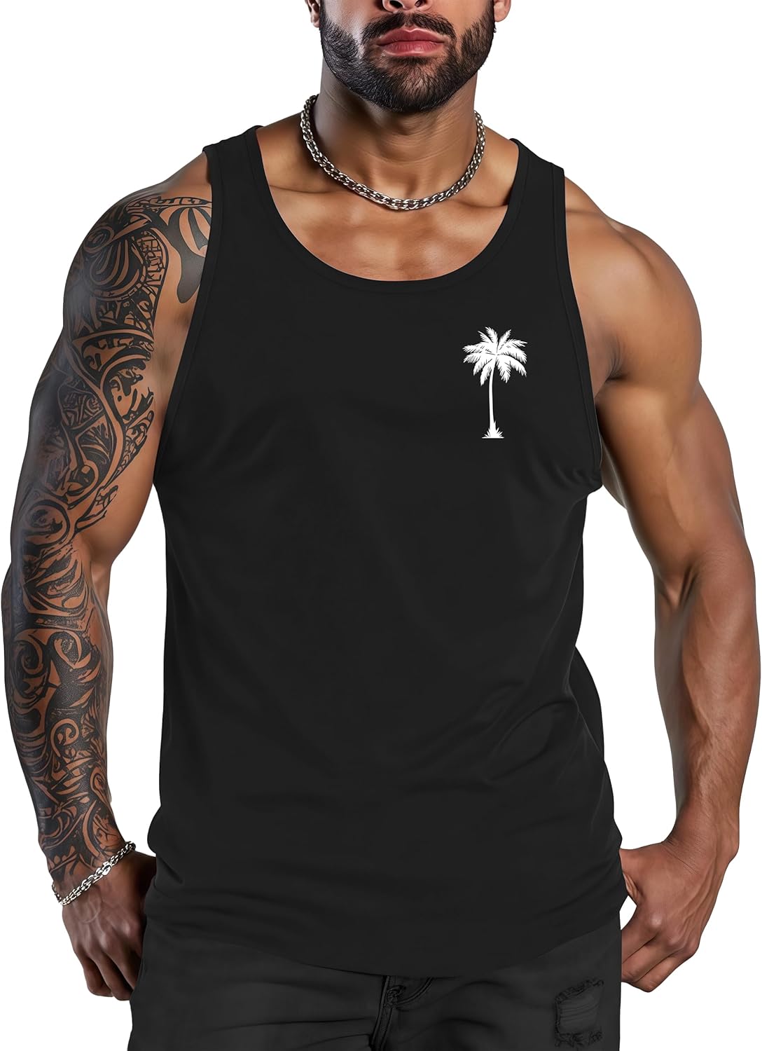 Men Tank Top Beach Summer Hawaii Vacation Plam Tree Graphic Workout Muscle Sleeveless Shirts for Men