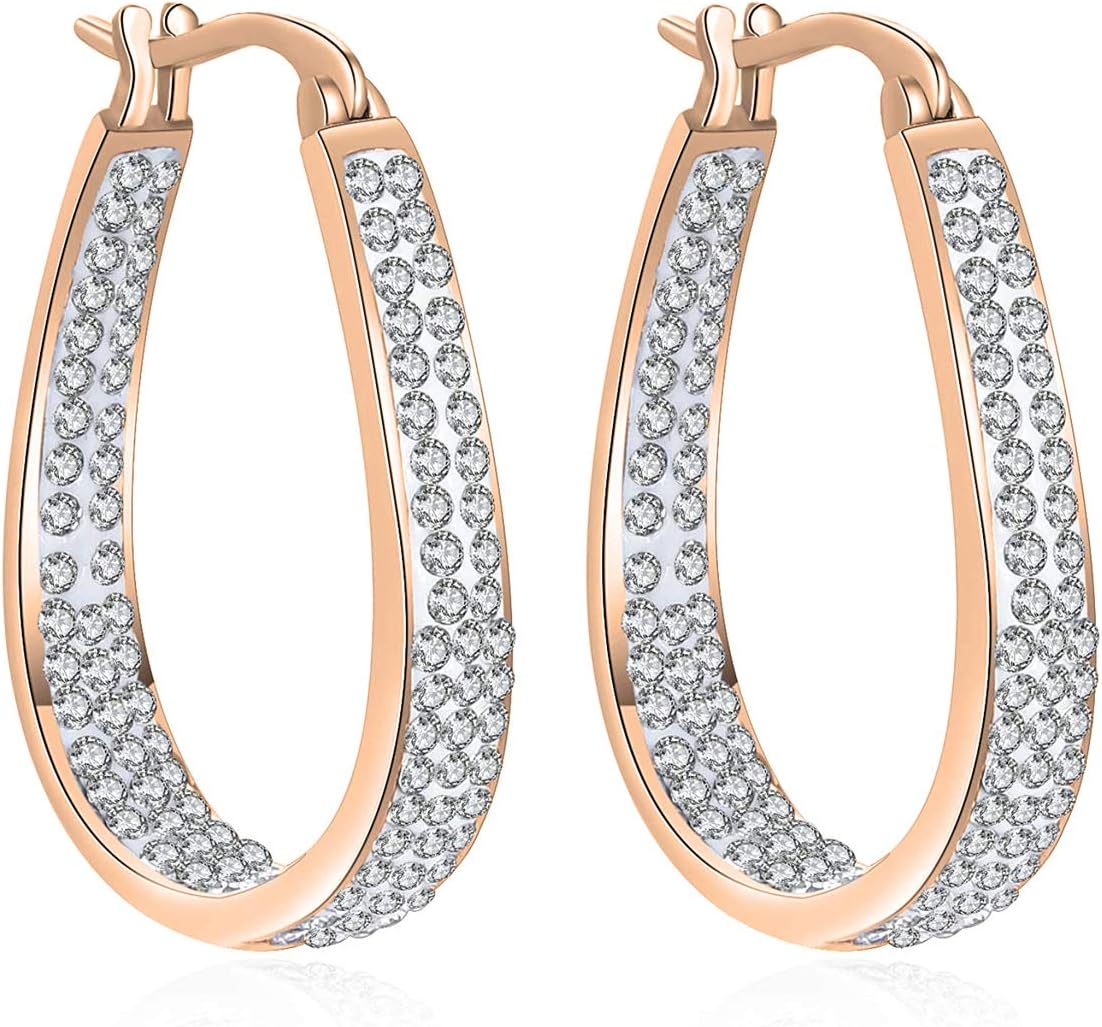 Savlano 14K Gold Plated Inside Out Crystal, Pearl Hoop Earrings- Oval Shape Earrings for Women Comes with Gift Box