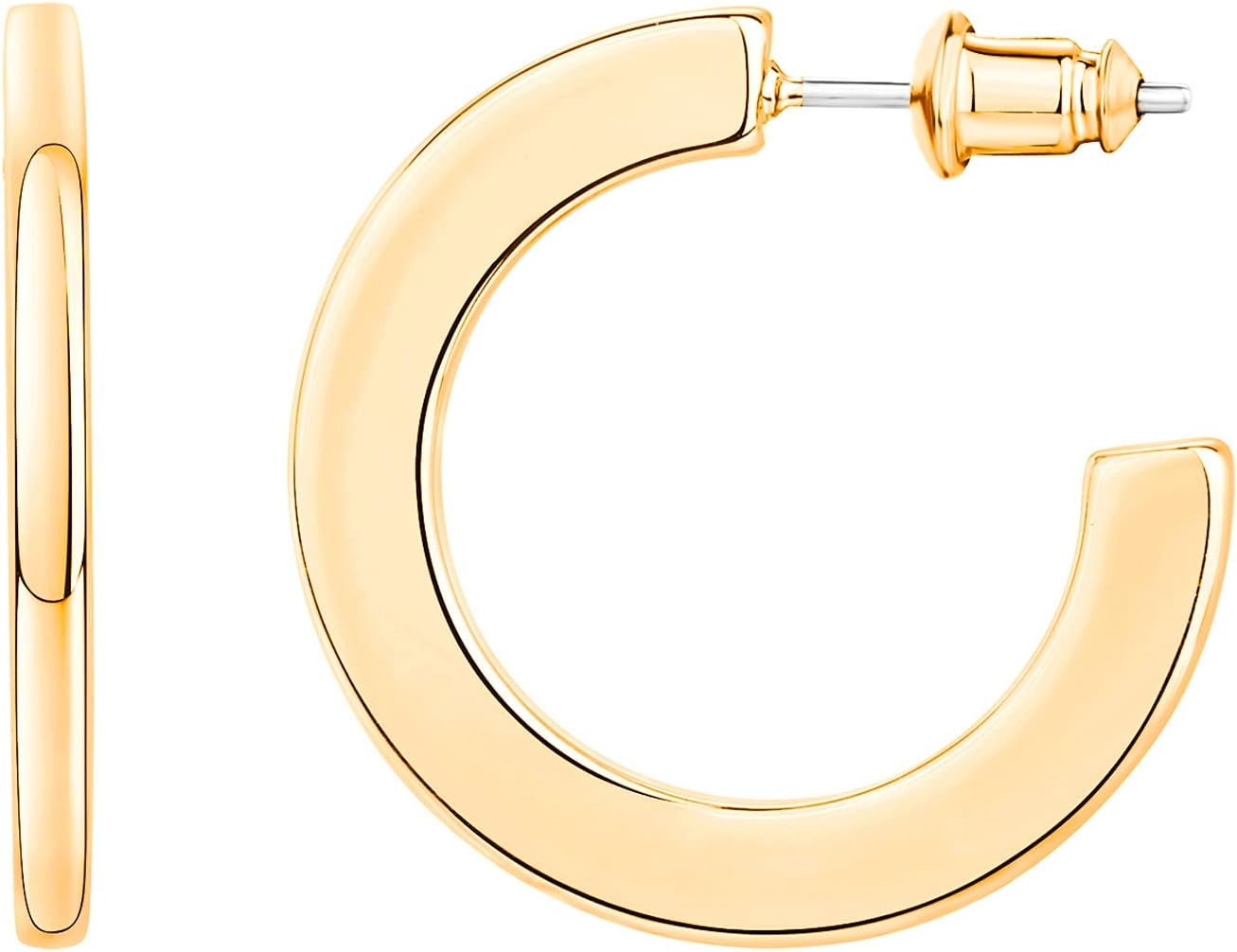 PAVOI 14K Gold Plated Hoop Earrings For Women | 4mm Flat Infinity Gold Hoops Women Earrings | Gold Plated Loop Earrings For Women | Lightweight Hoop Earrings Set