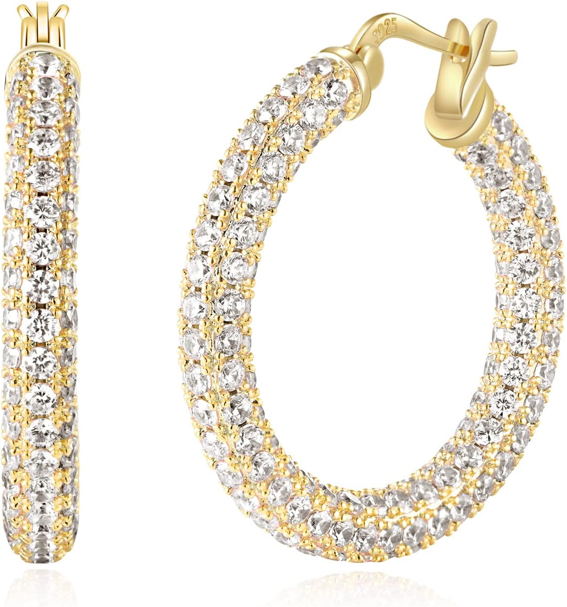 CiNily Hoop Earrings for Women Hypoallergenic, 14K Gold Plated 925 Sterling Silver Lightweight Mult-colors Crystal CZ Chunky Open Hoops Earrings Jewelry Gifts for Sensitive Ears 28mm/1.2"