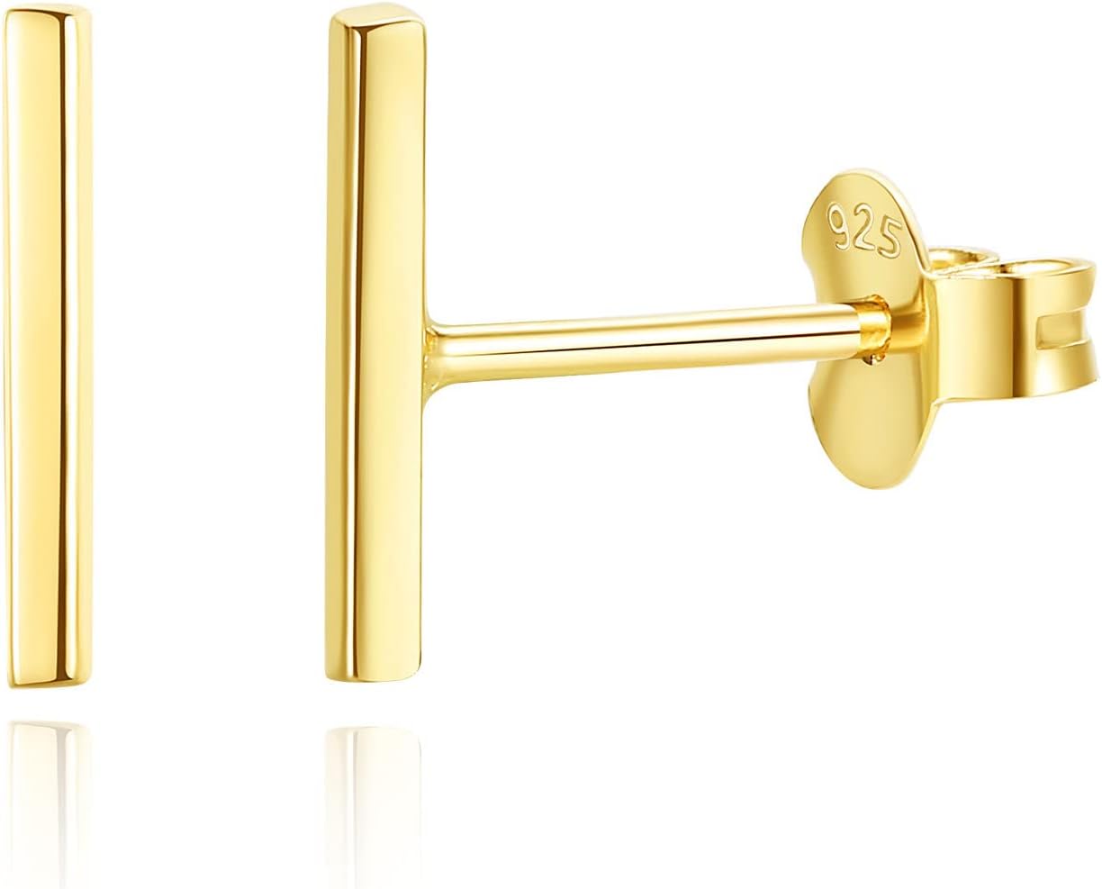Dainty Mini Bar Stud Earrings for Women 925 Sterling Silver Hypoallergenic Everyday Jewelry