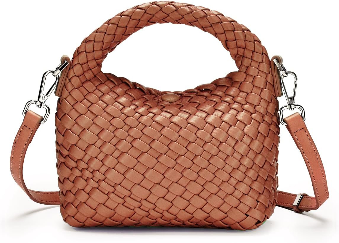 Small Woven Crossbody Bag for Women,y2k bag, woven purse Leather handbag mini Hobo (brown) gifts for girl