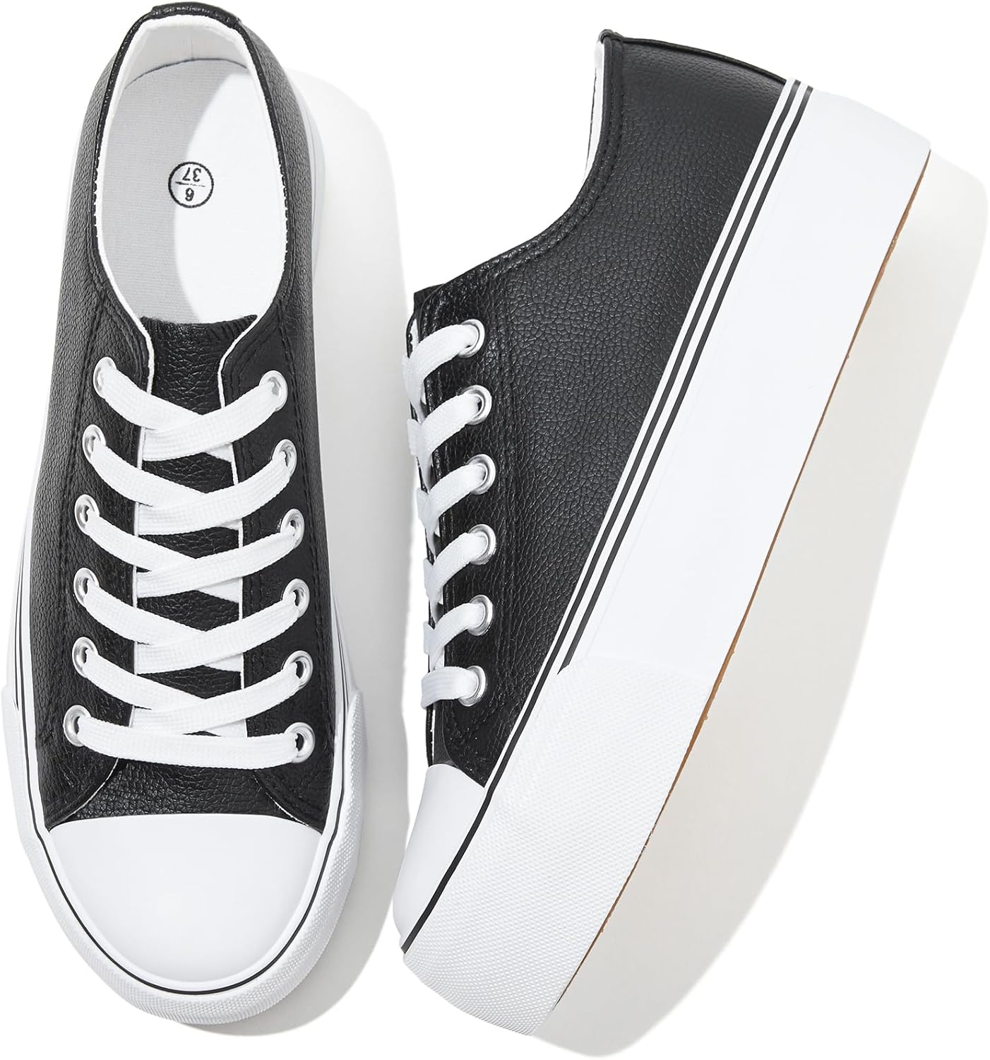 Rominz Women's White Platform Sneakers PU Leather Platform Shoes Classic Black Low Top Sneakers Casual Walking Shoes for Women