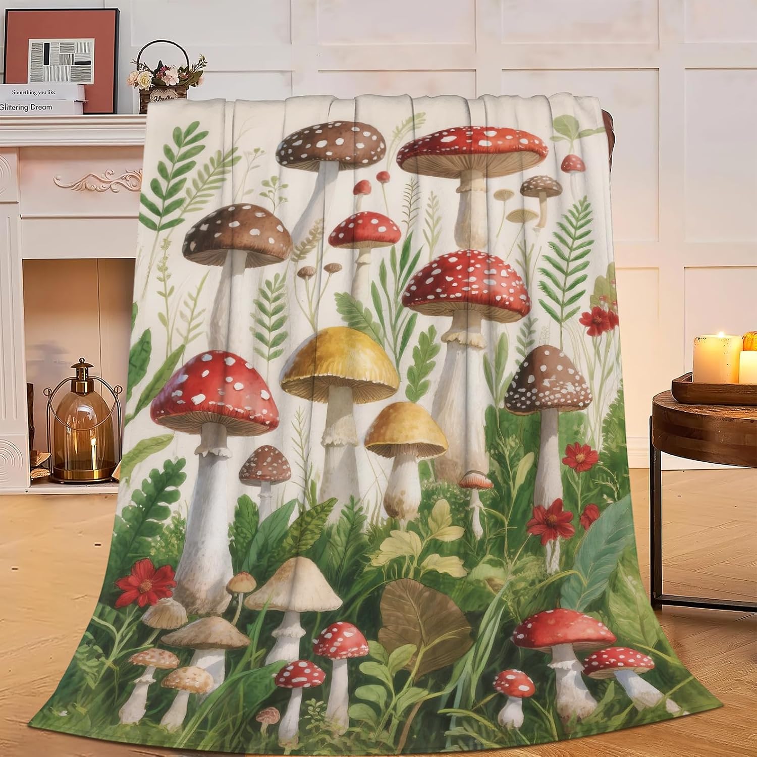 Vintage Mushroom Blanket Forest Mushroom Soft Cozy Throw Blanket Floral Super Plush Warm Stuff Lightweight Fleece Flannel Blankets Gifts for Women Girls Kids Adults 50"X40"