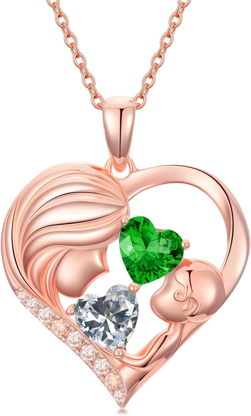 Mother Daughter Birthday Gifts for Her Women Rose Gold Plated Mom Heart Pendant with 12 Months Birthstone Necklace, Christmas Gifts for Mom Daughter, Birthday Mothers Day Gifts Anniversarry Jewelry for Wife Girlfriend Sister