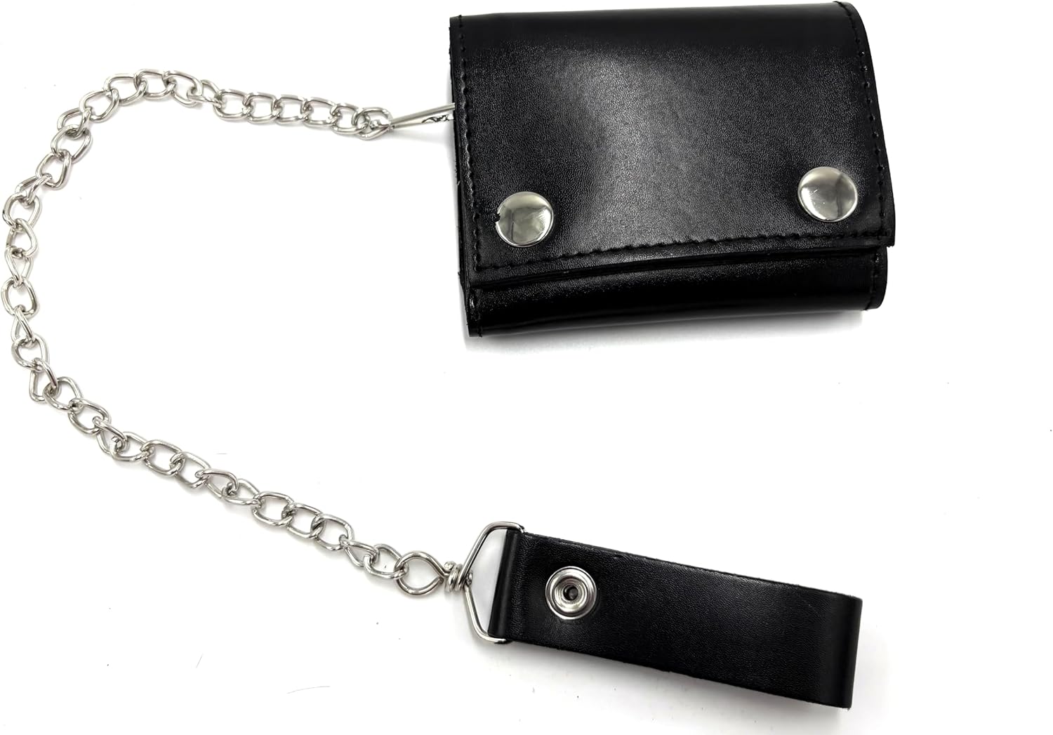 - Genuine Leather Wallet Trifold Leather Wallet Biker Wallet Chain Wallet (Black)
