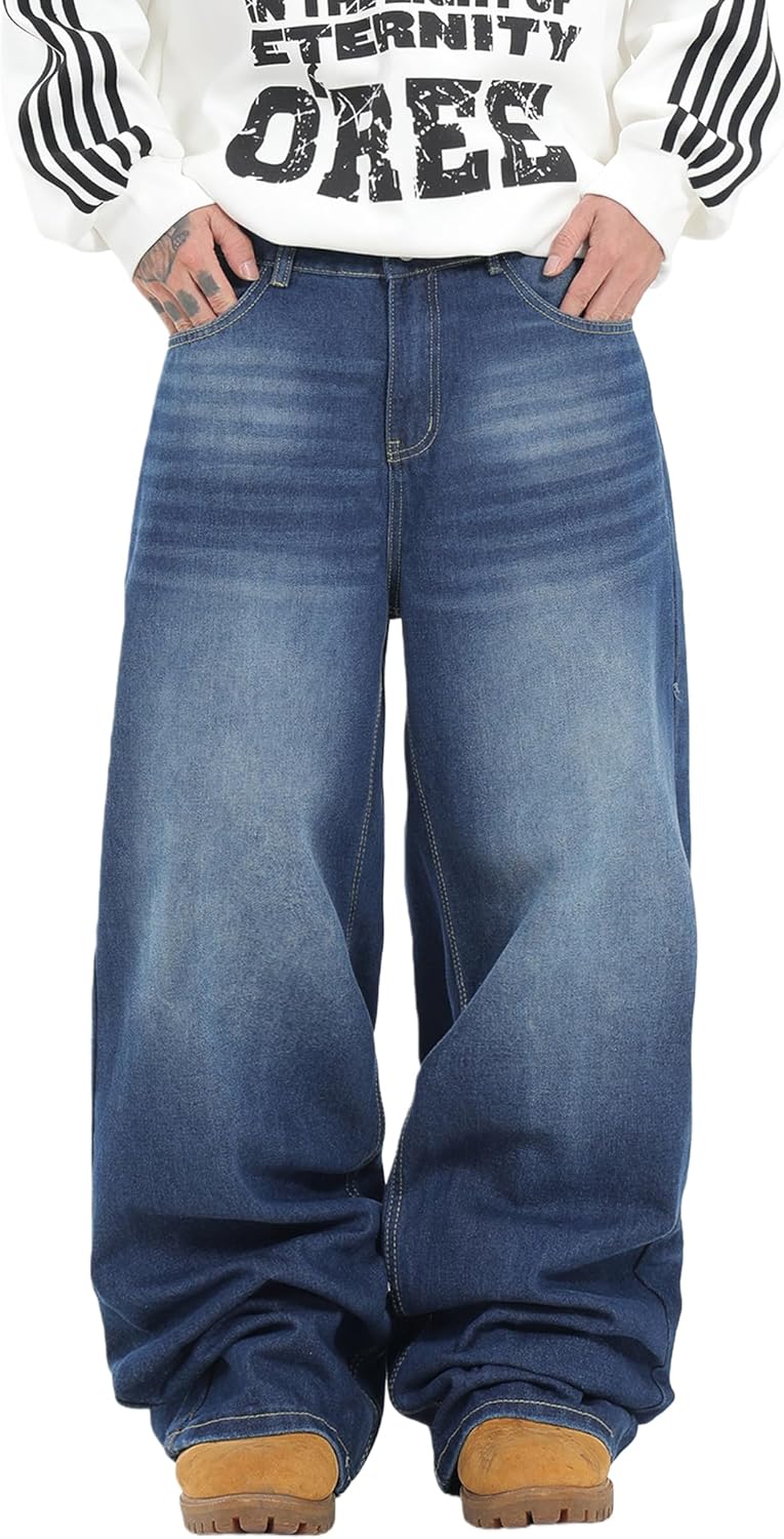 Men's Baggy Jeans Loose Fit Denim Pants Mid Waist Trousers Wide Leg Skater Jeans Y2K Streetwear