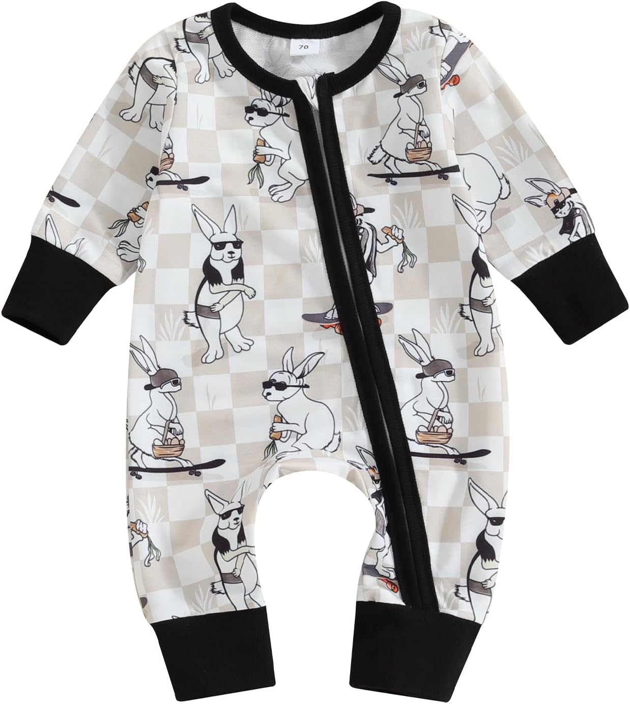Newborn Baby Boy Girl Easter Rabbit Jumpsuit Long Sleeve Oblique Zipper Romper Bunny One Piece Overall Outfit
