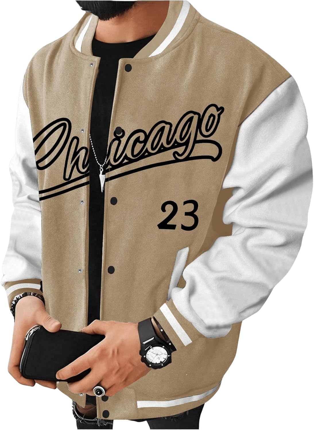 Men's Letter Print Varsity Jacket Slogan Graphic Button Down Coat Bomber Baseball Coat With Pockets