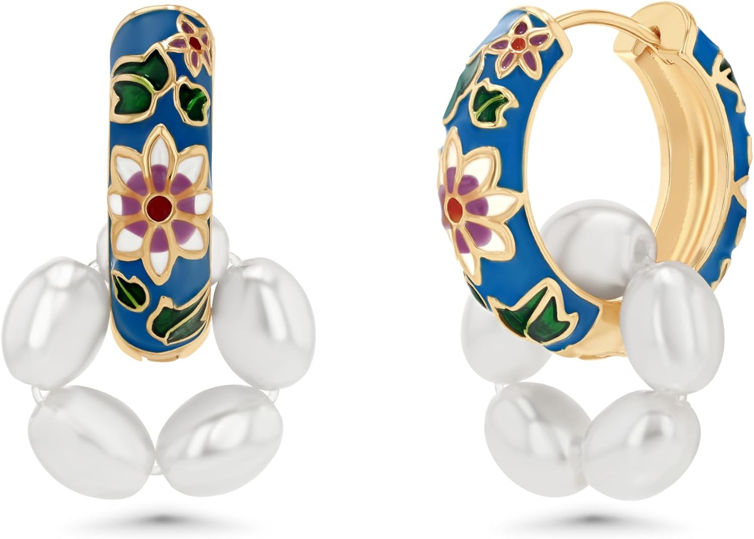 18K gold plated Hoop Earrings, Pearl Earrings, 18K gold plated, Hypoallergenic, Boho, Chunky & Small Sizes, Perfect for Women & Special Occasions, Two Ways to Wear with Removable Pearls
