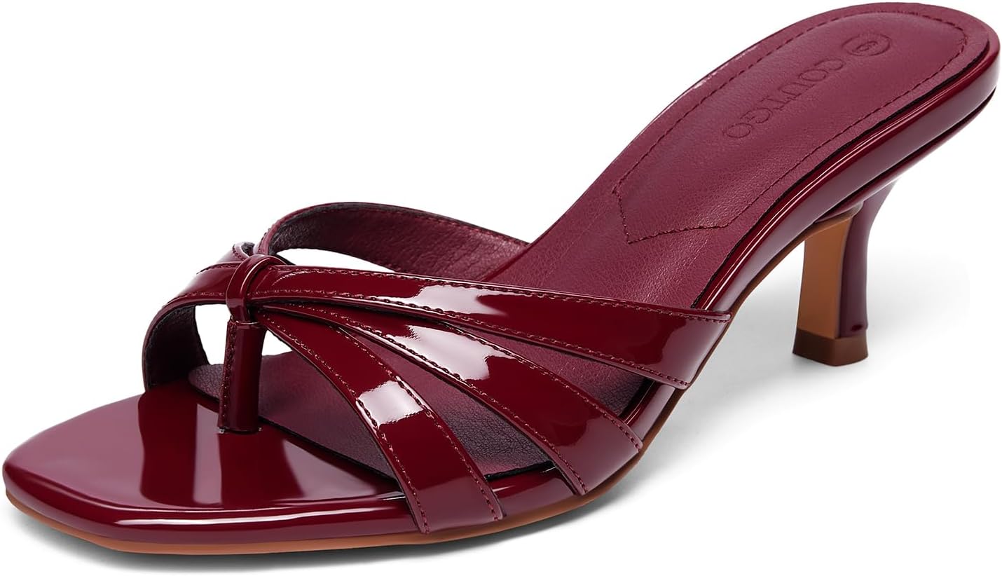 Coutgo Womens Strappy Kitten Heels Sandals Square Open Toe Flip Flops Slip On Slides Summer Dress Shoes