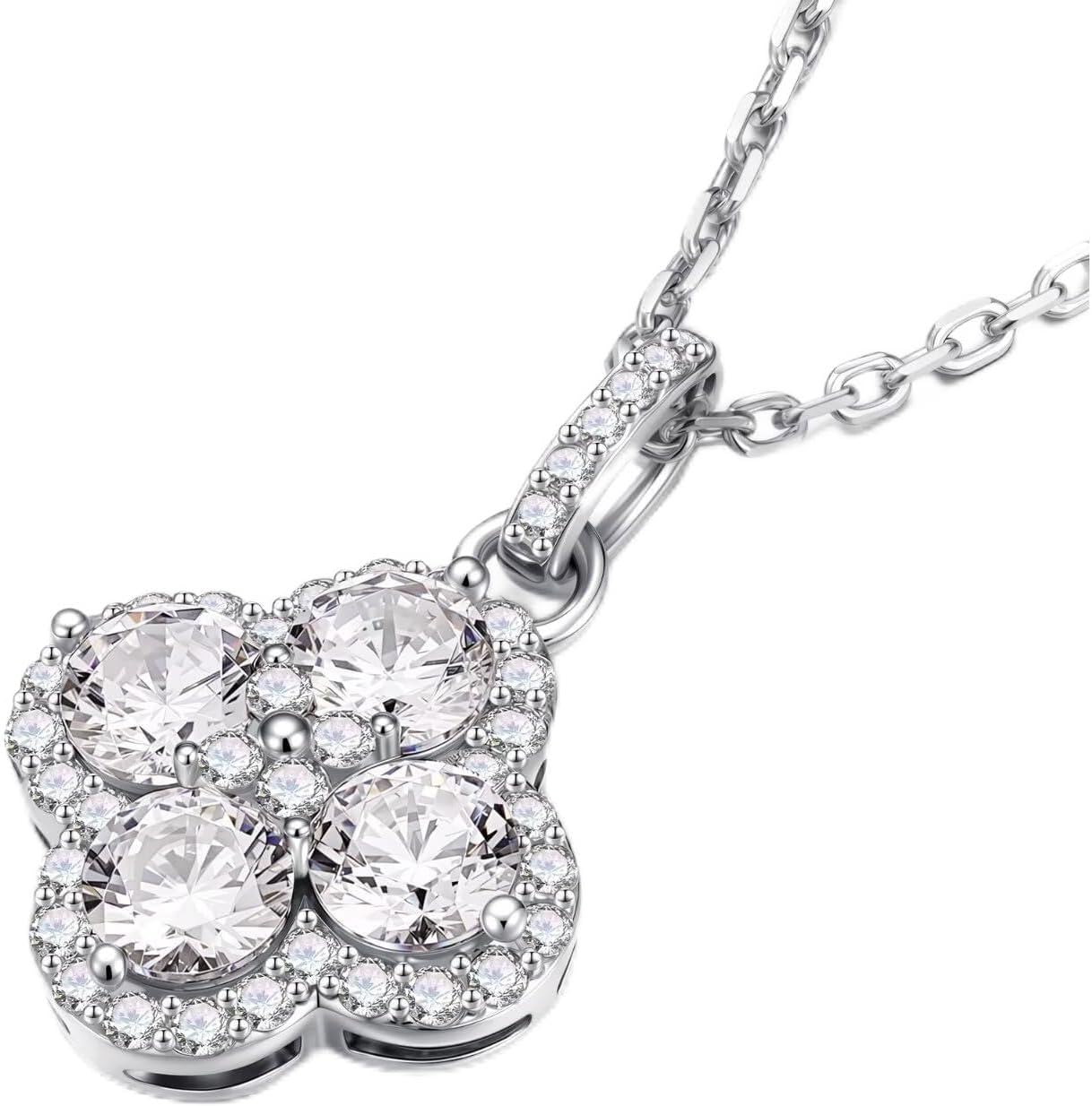 Iefil Clover Necklace for Women - 925 Sterling Silver Birthstone Necklace for Women, Anniversary Birthday Gifts for Wife Girlfriend Mom