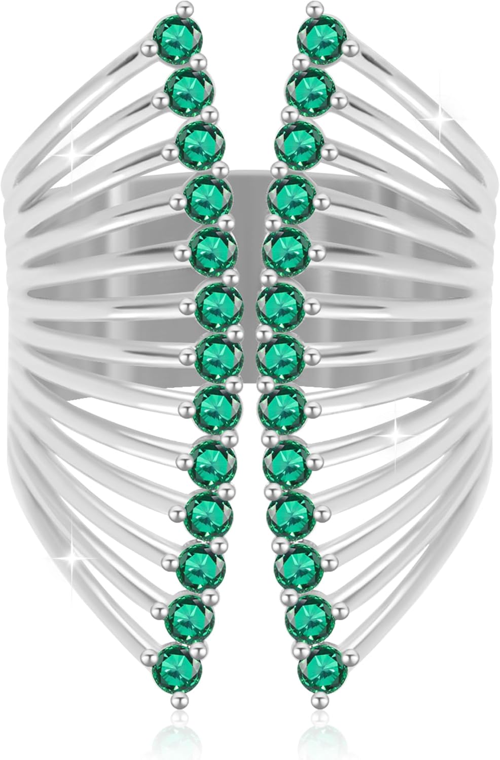 Rhinestone Butterfly Rings for Women, Cubic Zirconia Fake Diamond Adjustable Thumb Ring, Chunky Vintage Gemstone Rings, Available in Gold Plated and Silver Plated