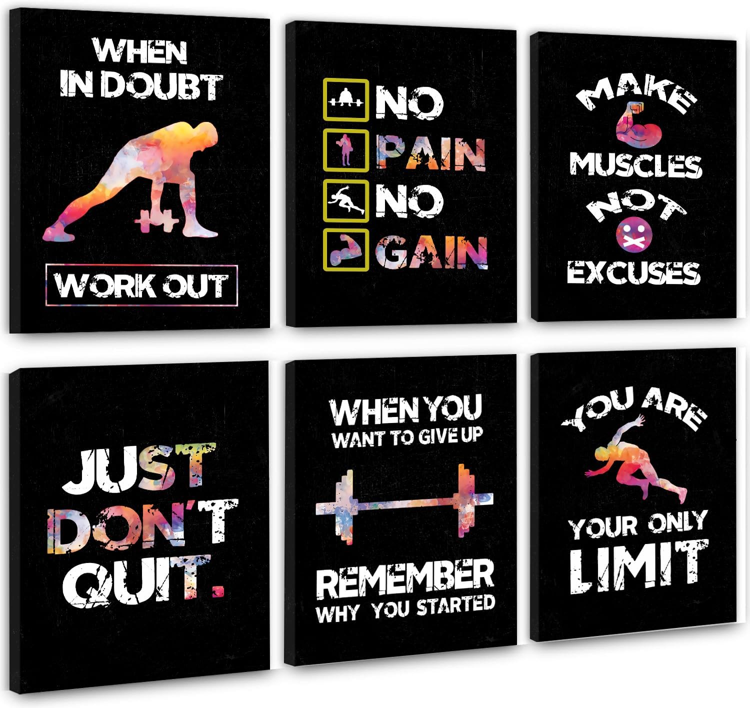 - ◆Ready-to-Hang Decor◆Each piece of gym art is professionally stretched over a sturdy wooden frame, making it ready to hang as soon as you receive it. Our package includes traceless nail accessories for effortless installation. With this set of 6 (8 x 10 inches) prints, it's the perfect gym decor for home gym.