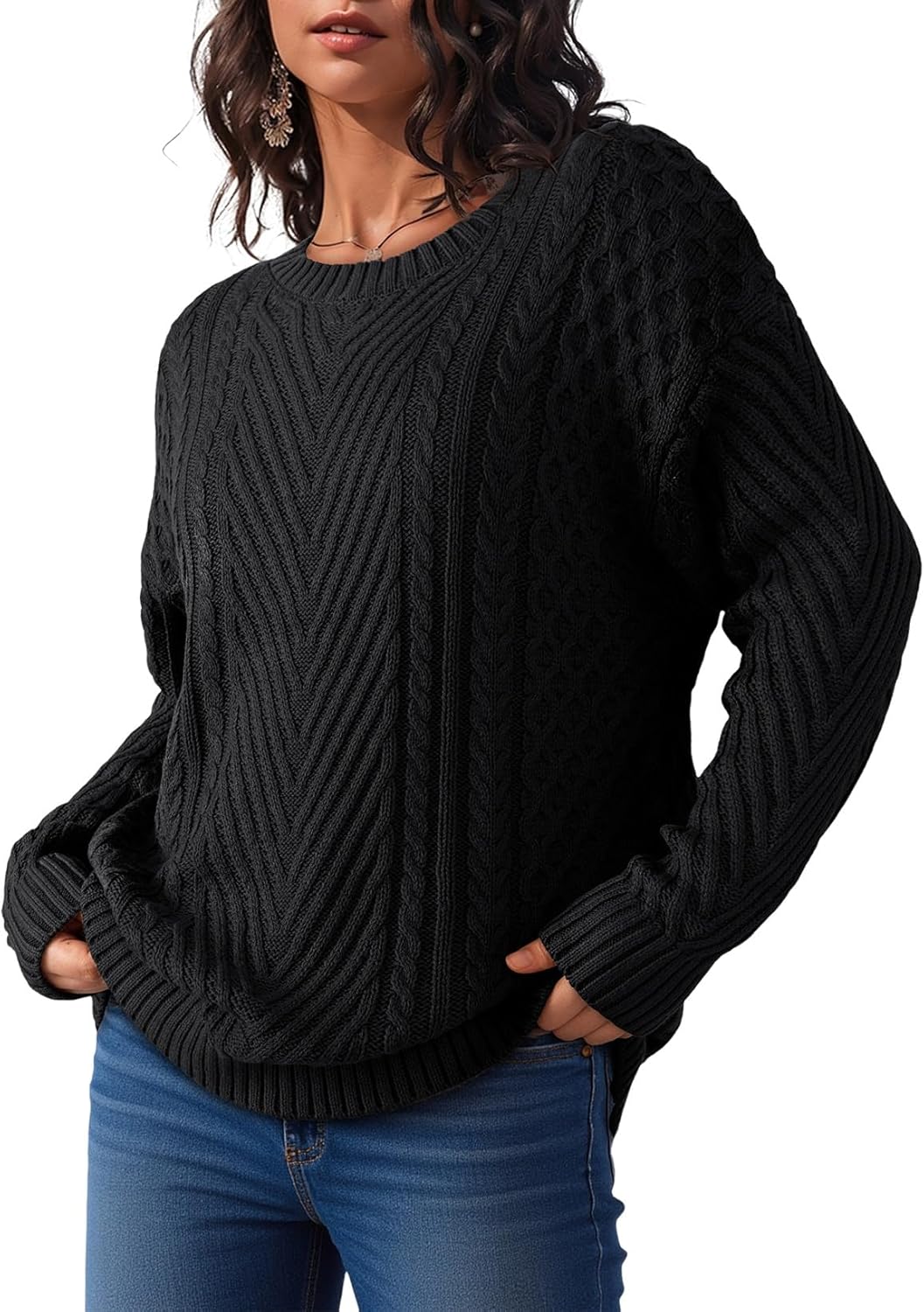 Dokotoo Women's Sweaters Casual Long Sleeve Oversized Sweater Fall Cable Knit Chunky Pullover Jumper Tops