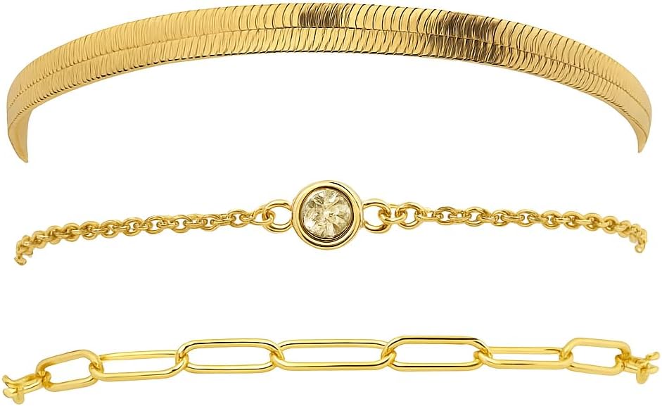 AMARYLIA Elegant Gold-Plated Bracelet Set for Women – Hypoallergenic & Waterproof Jewelry, Stylish Stackable Bangles for Everyday & Special Occasions, Herringbone, Paperclip, Cable chain bracelets, Fashion Trendy and Elegant Accessories Gifts for Womens